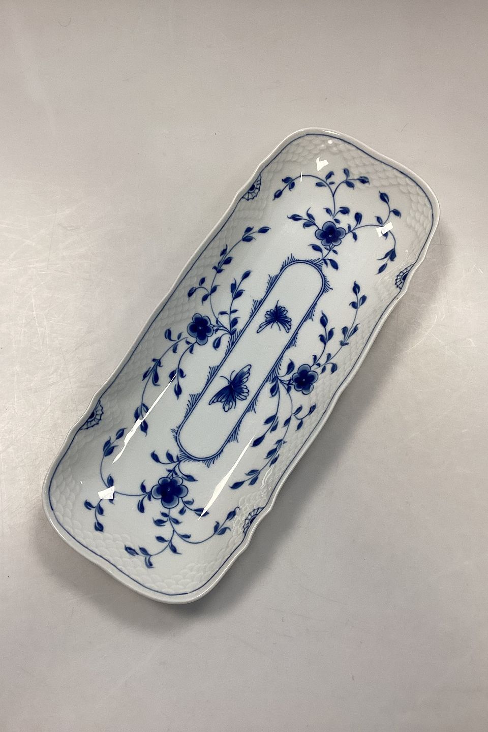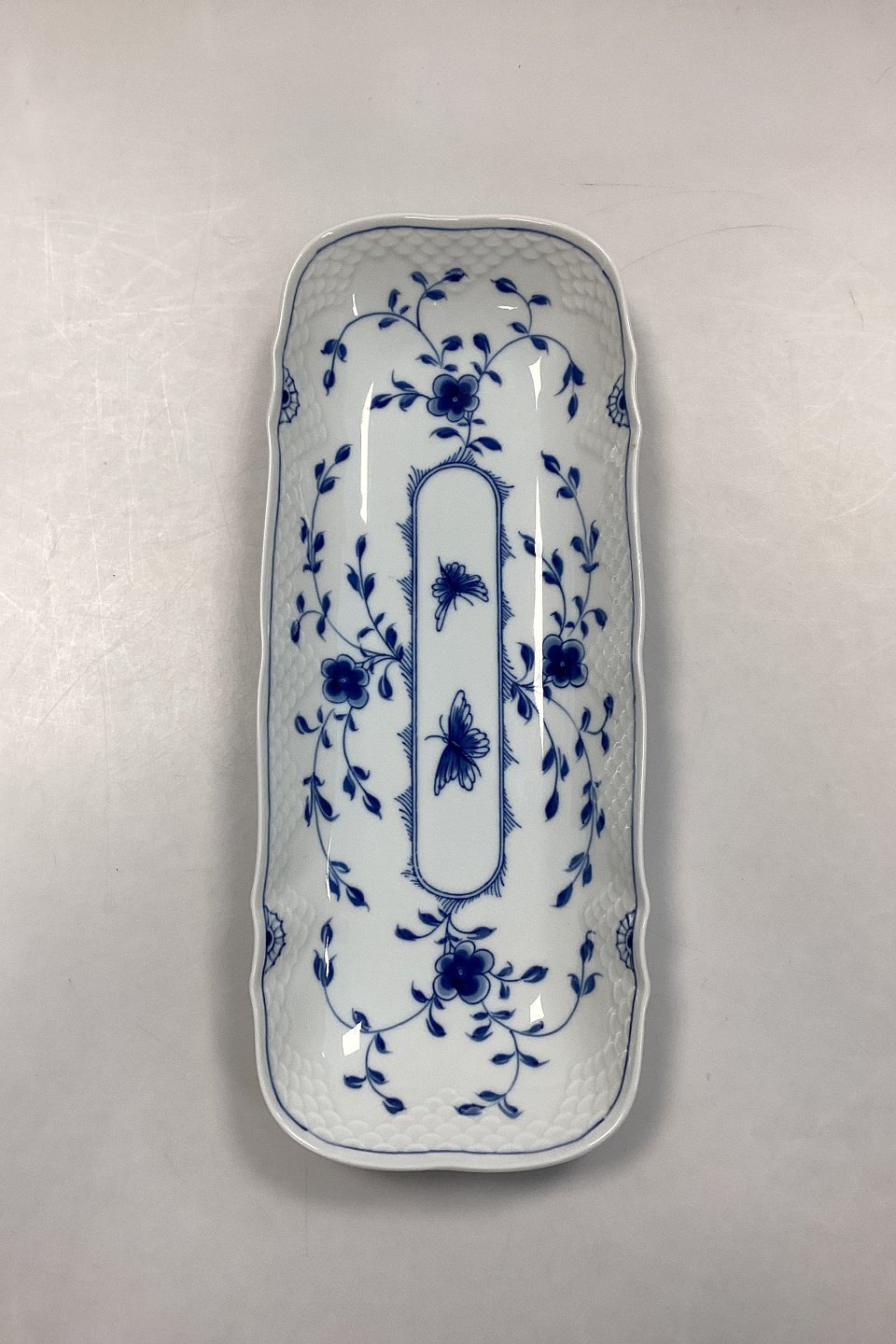 Beskrivelse: Bing og Grøndahl Sommerfugl Aflangt Sellerifad No. 378 eller 205.