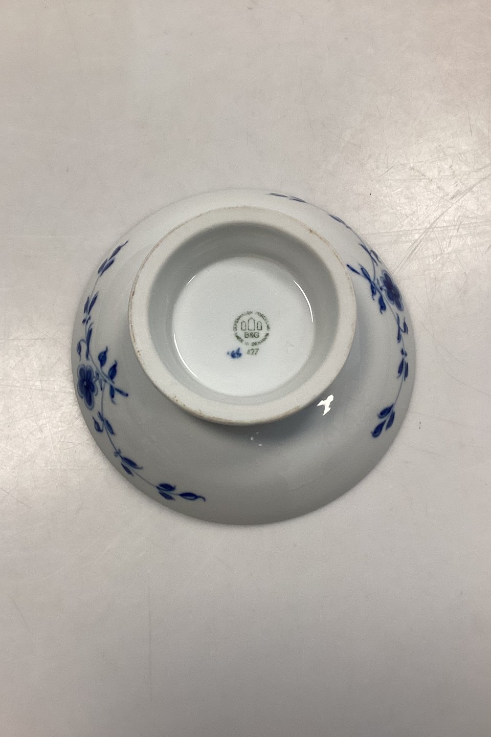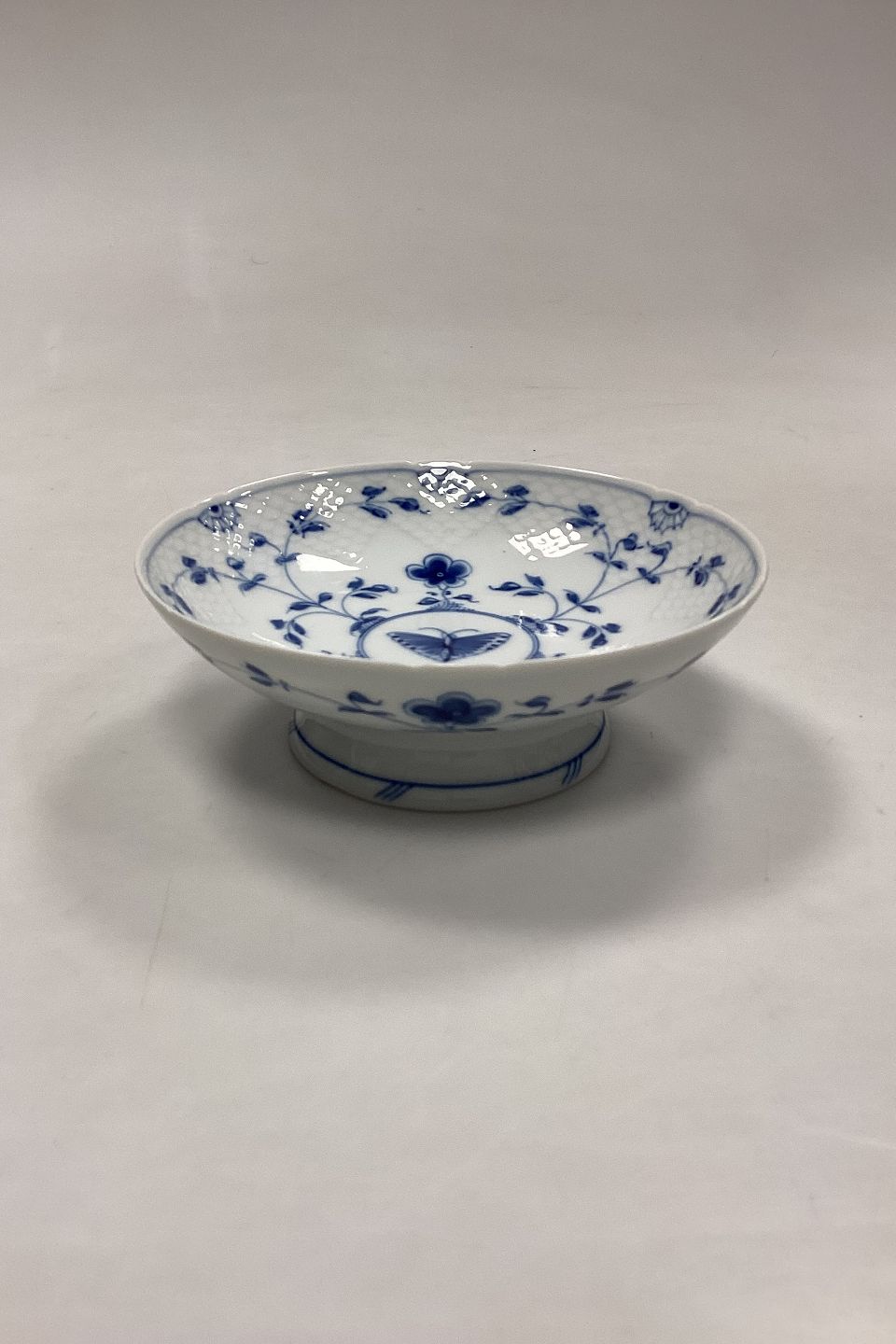 Beskrivelse: Bing og Grøndahl Sommerfugl Kageskål på Fod, lille No. 427 eller 222. Måler 5,5 cm x 15,5 cm / 2,16 in. x 6,10 in.