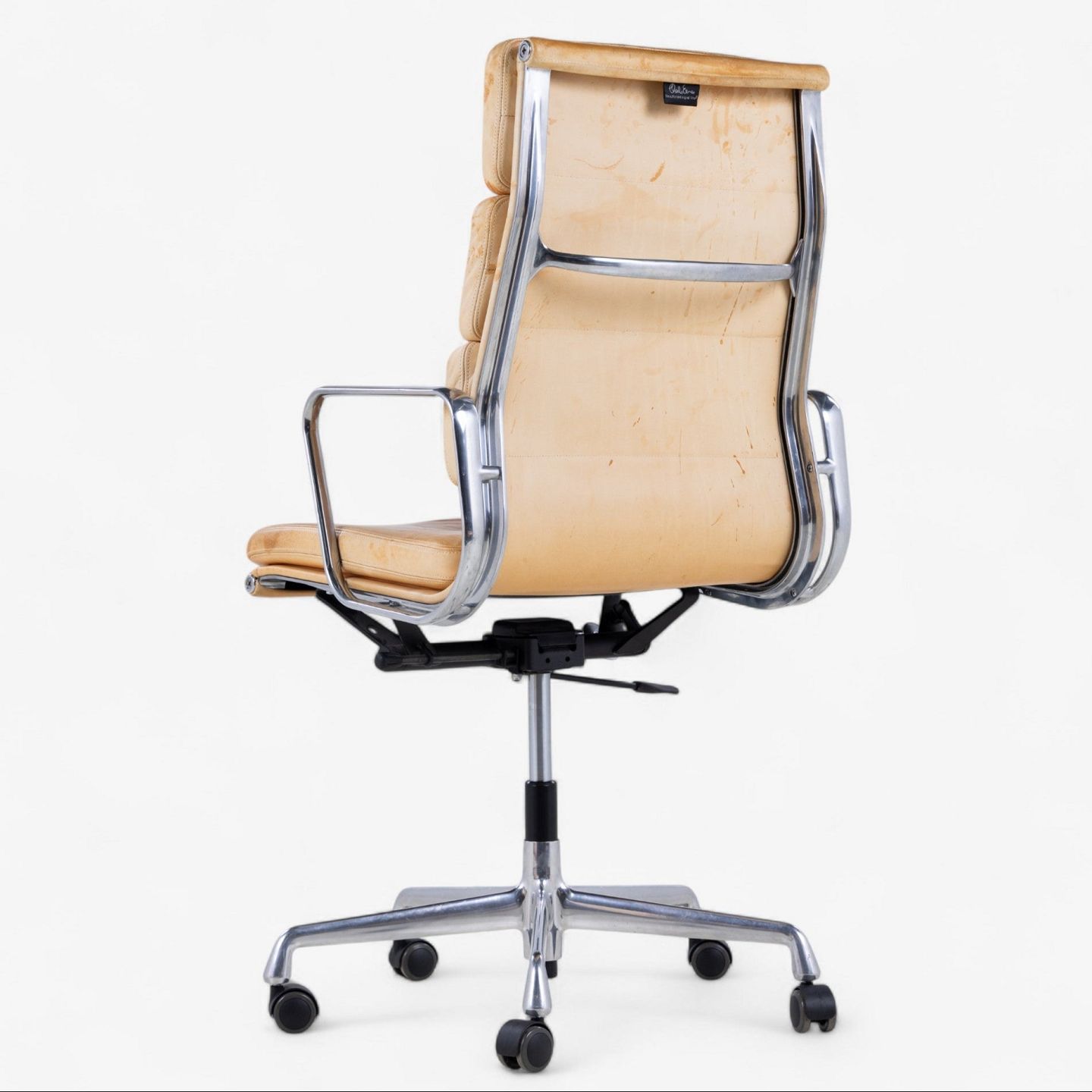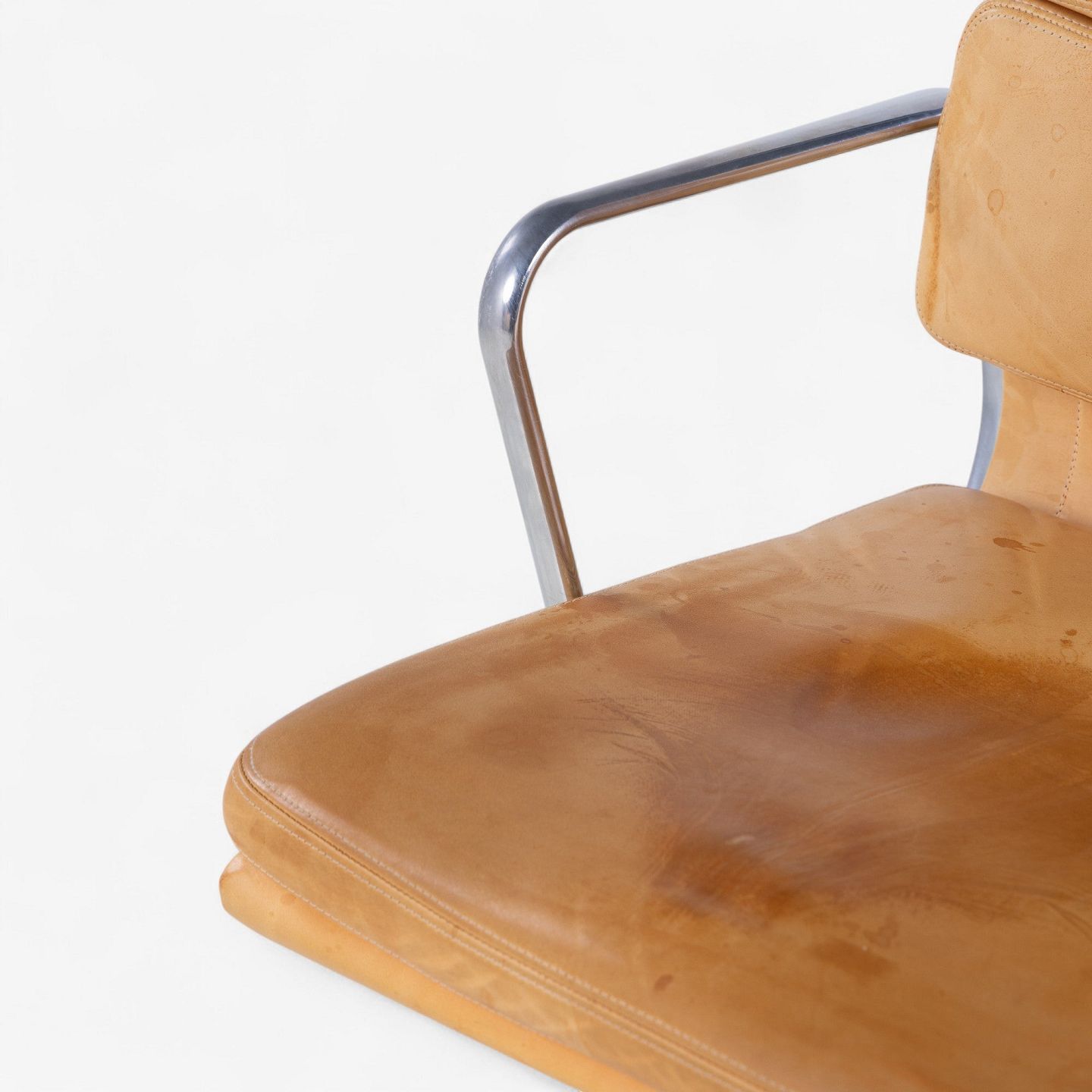 EA 219 - Højrygget kontorstol i patineret naturlæder på stel af stål. Mærket fra producent.