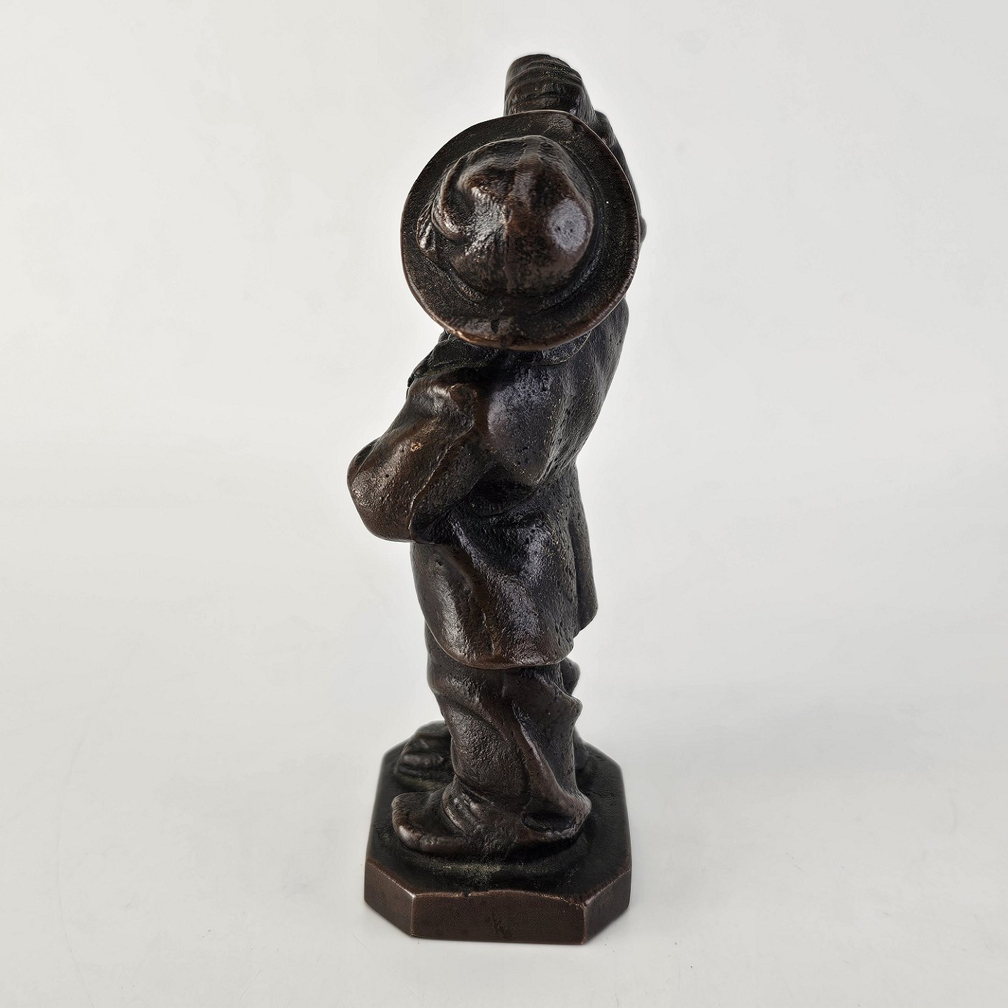 Beskrivelse: Statuette i bronze med motiv af en mand, som drikker af en flaske