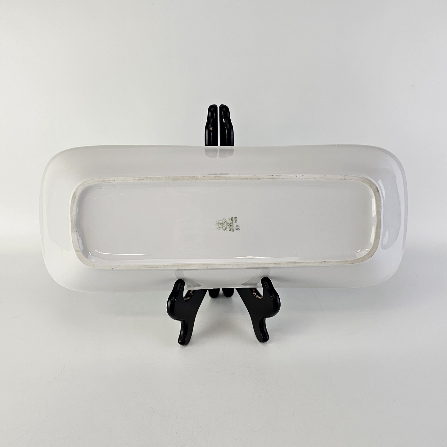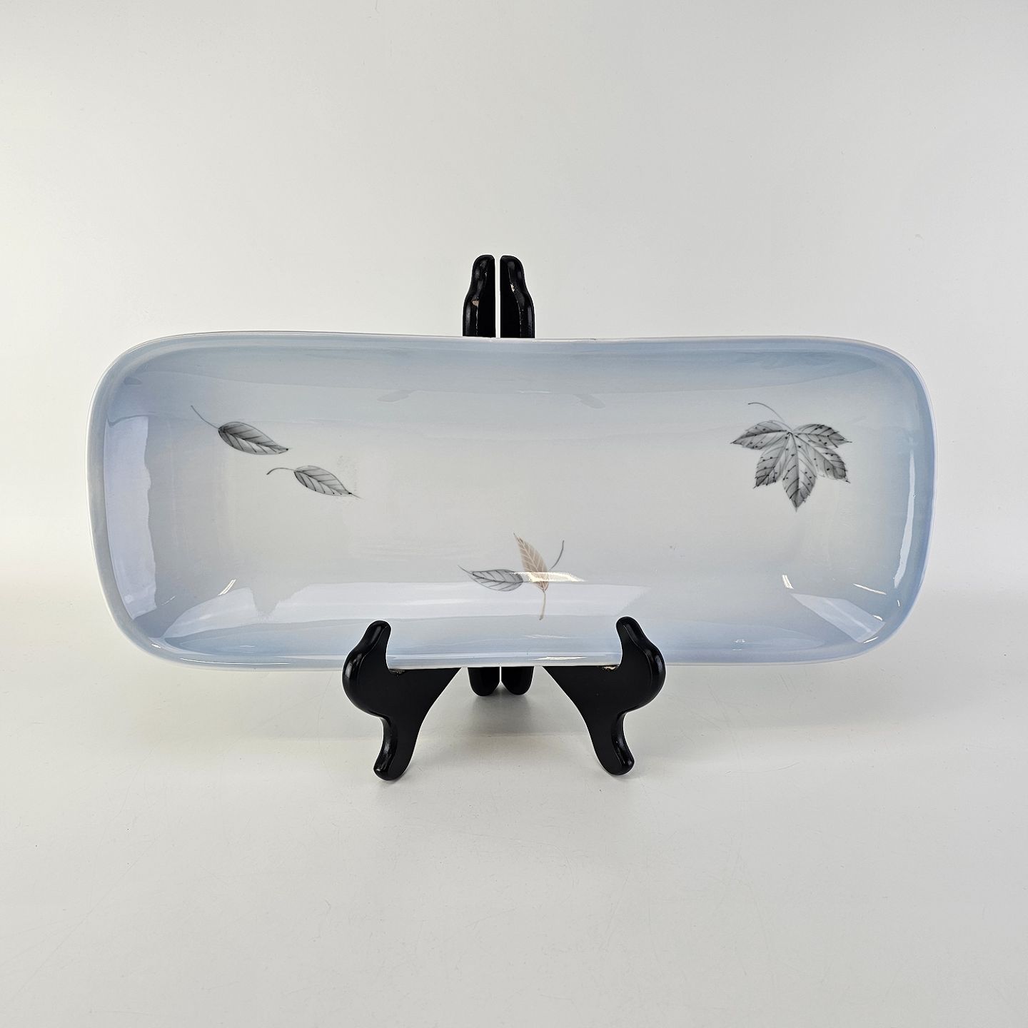 Beskrivelse: Aflangt roulade fad i porcelæn fra stellet Løvfald