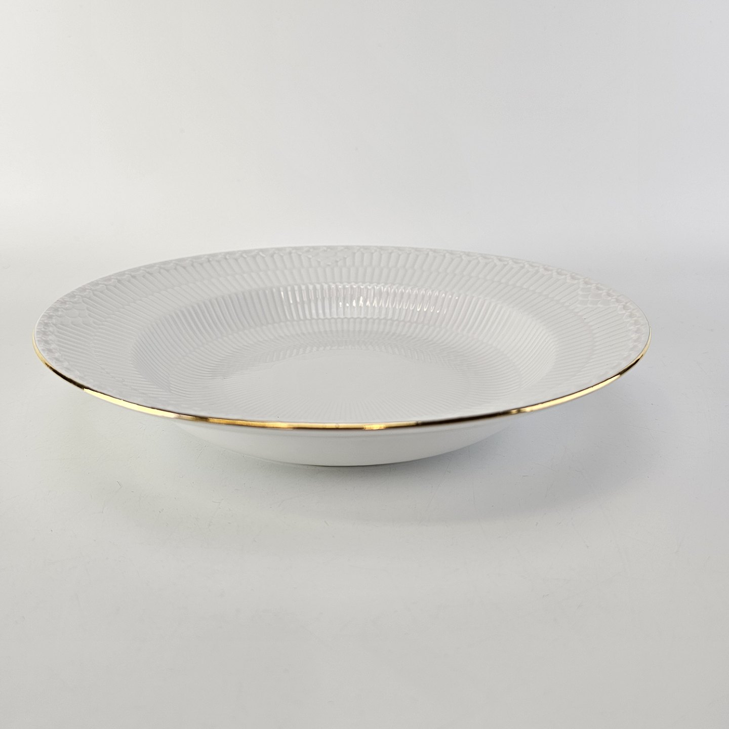 Beskrivelse: Stor dyb tallerken i porcelæn fra stellet Hvid Halvblonde