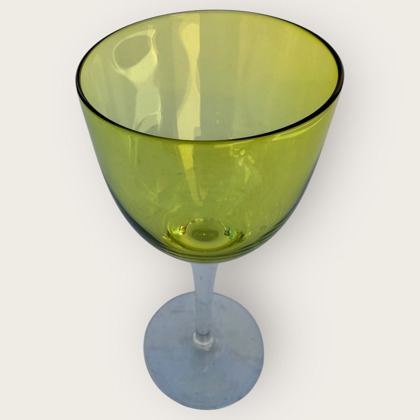 : Baccarat, Perfection, Rhinvins glas på høj stilk og med grøn kumme, 19cm høje, fin stand.