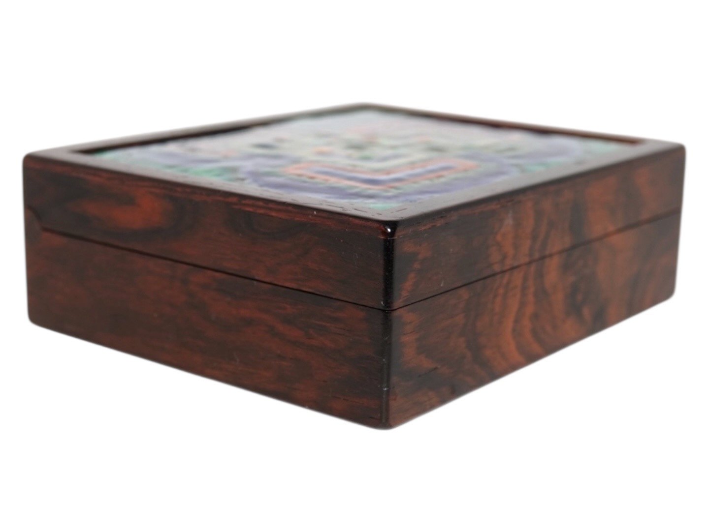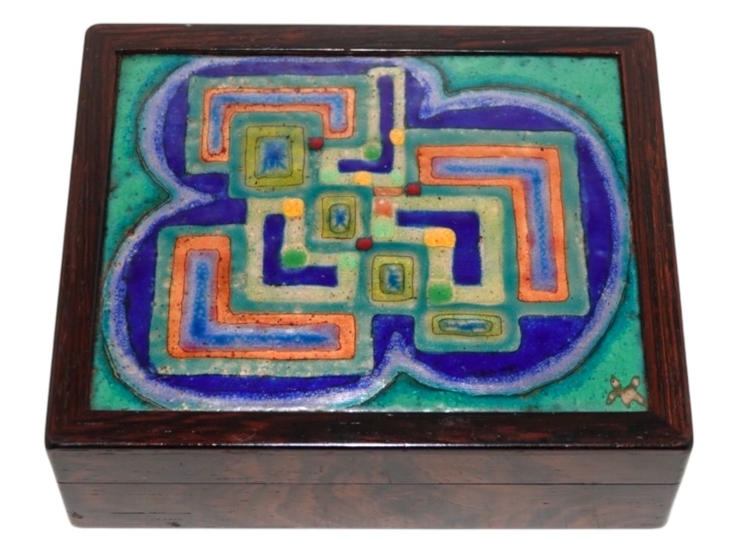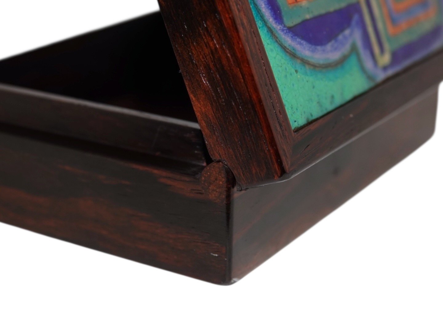 Beskrivelse: Alfred Klitgaard skrin / æske af palisander med Bodil Eje emalje.