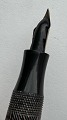 Beskrivelse: Sølv og grøn spiralstribet Sheffield Pen fyldepen fremstillet i 1940’erne. Spidsen er en 14 karat guldstoles fra Oxford. Muligvis et dansk produkt. Har F.eks. Lighed med fyldepenne fremstillet hos Penol. Fremstår i god stand. Fungerer ikke. Der skal indsættes ny gummisæk før end pennen kan optage blæk og skrive igen. Ny gummisæk kan indsættes mod et tillæg på kr. 250,- til fyldepennens pris. Mål: 12,2 cm