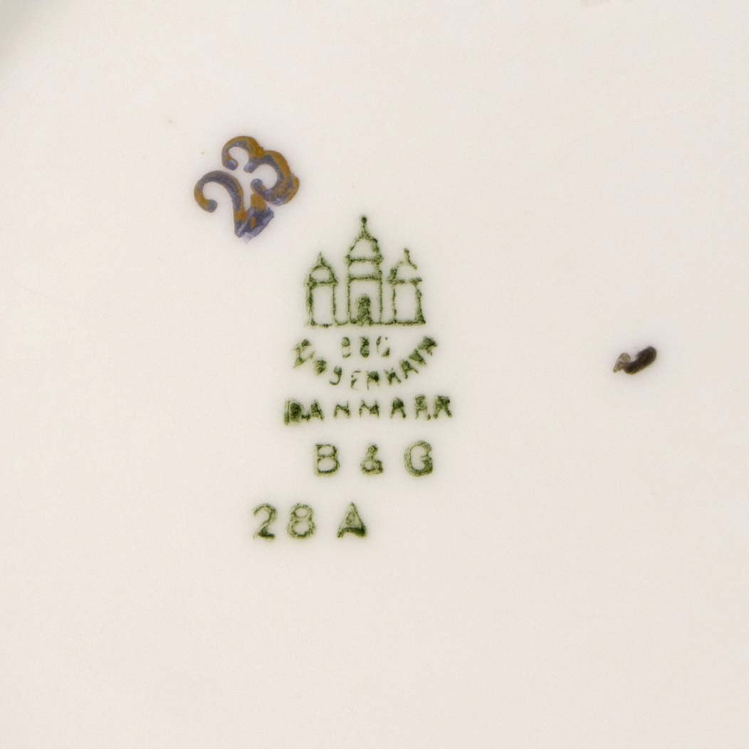 Beskrivelse: Kagetallerken i porcelæn fra stellet Heimdal. Nr. 28 B