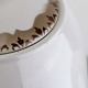 Fremstår med indvendige brugsspor, mindre slid på glasuren på tuden, utydelig grønlig streg under glasuren på låget, ujævnhed i topkanten og brugsspor under bunden.