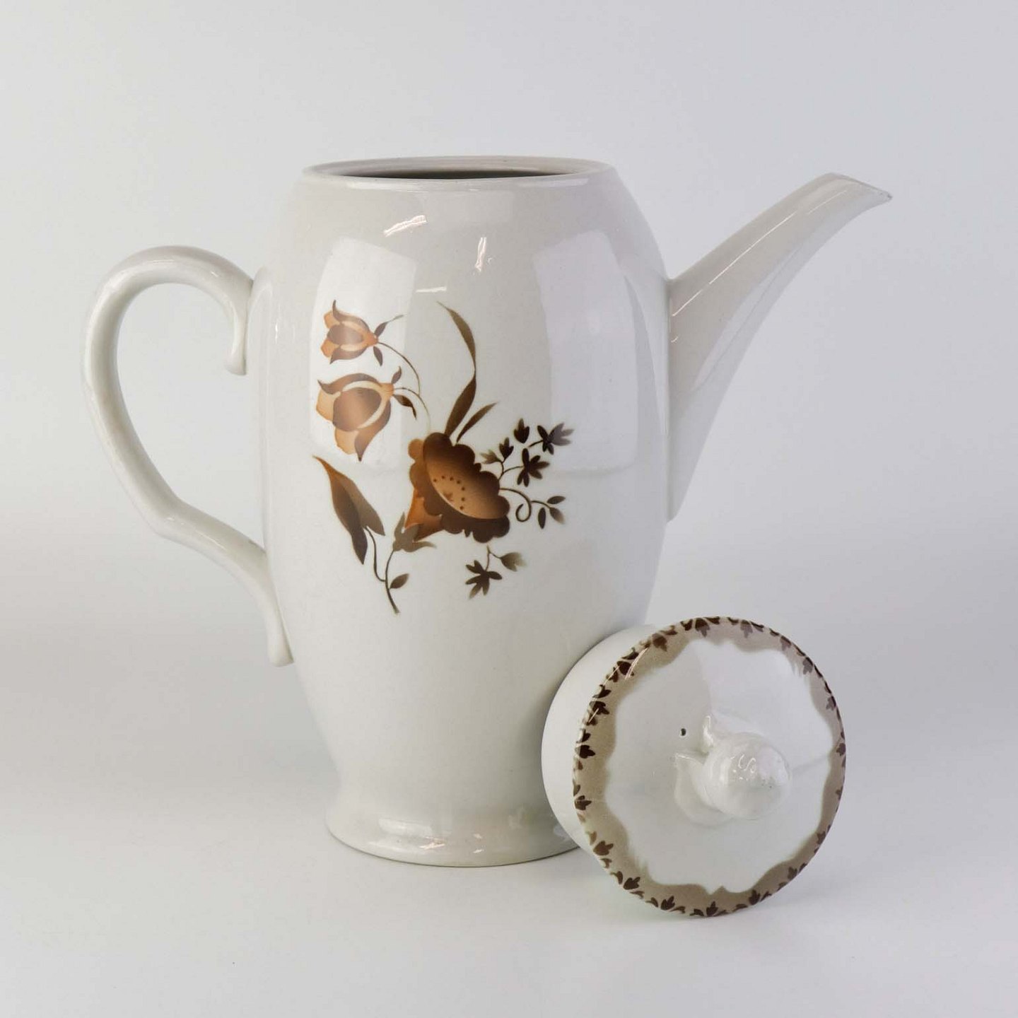 Beskrivelse: Kaffekande i fajance fra stellet Convolvulus Snerle.