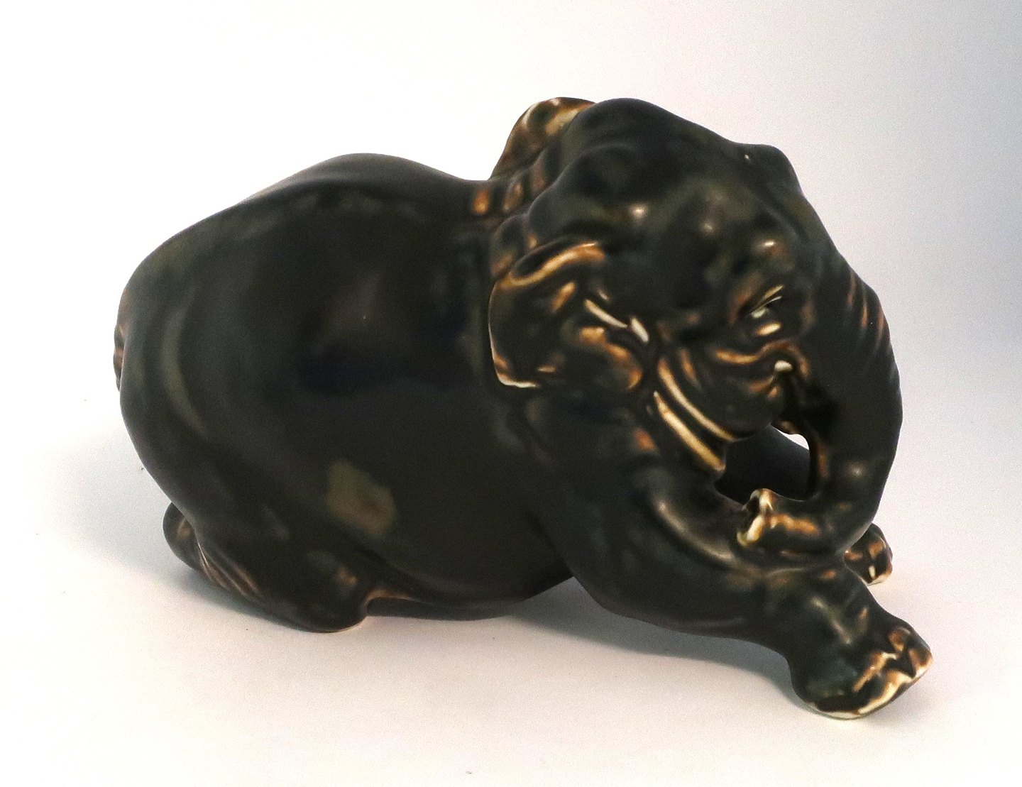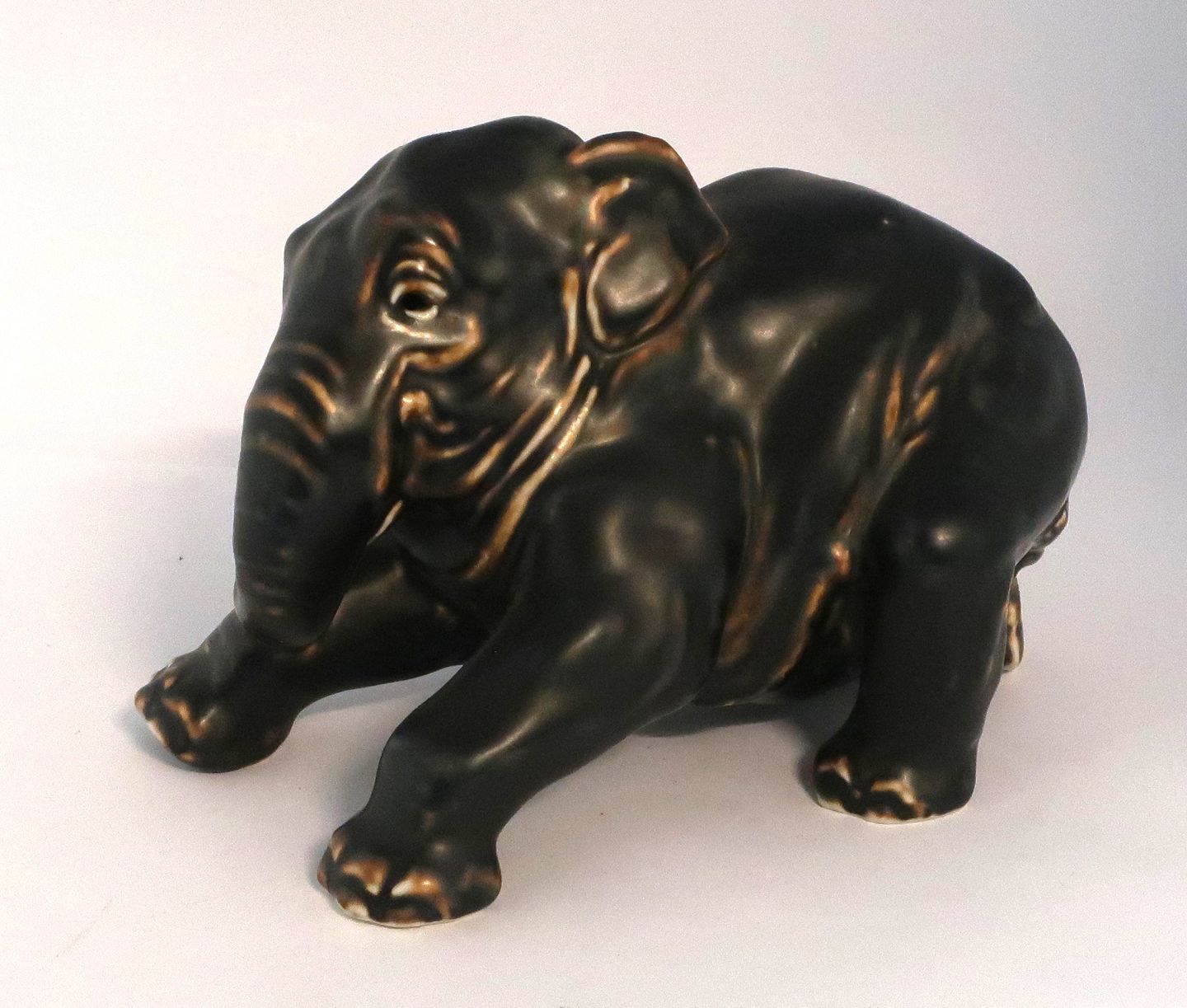 Description: Royal Copenhagen. Stoneware elephant figurine. Model 22171. Length 21 cm. (2 quality)
