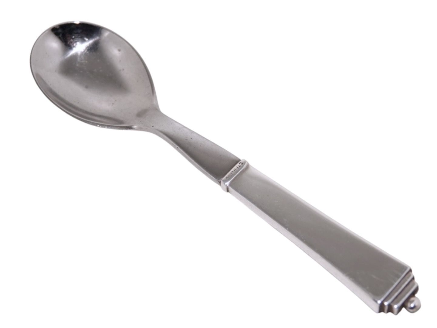 Description: Georg Jensen Pyramid sterling silver and stainless steel, egg spoon.