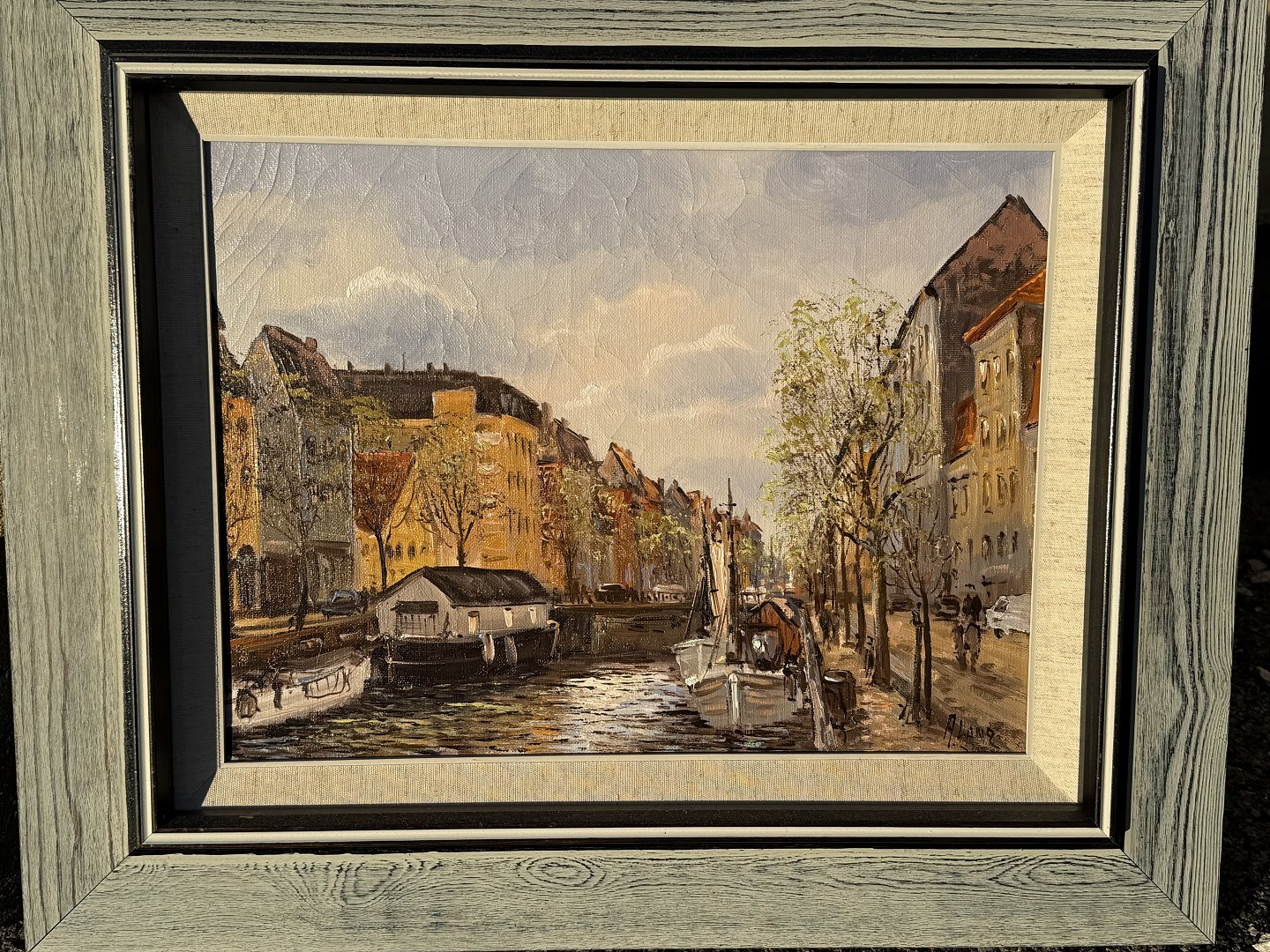 Beskrivelse: Aksel Lang Olsen ( født 1931), Christianshavns kanal, Olimaleri på lærred, Mål med ramme: 48x58cm