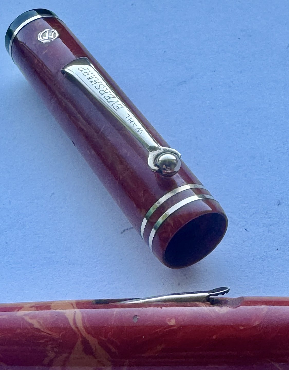 Coral red marbled Wahl Eversharp Gold Seal fountain pen