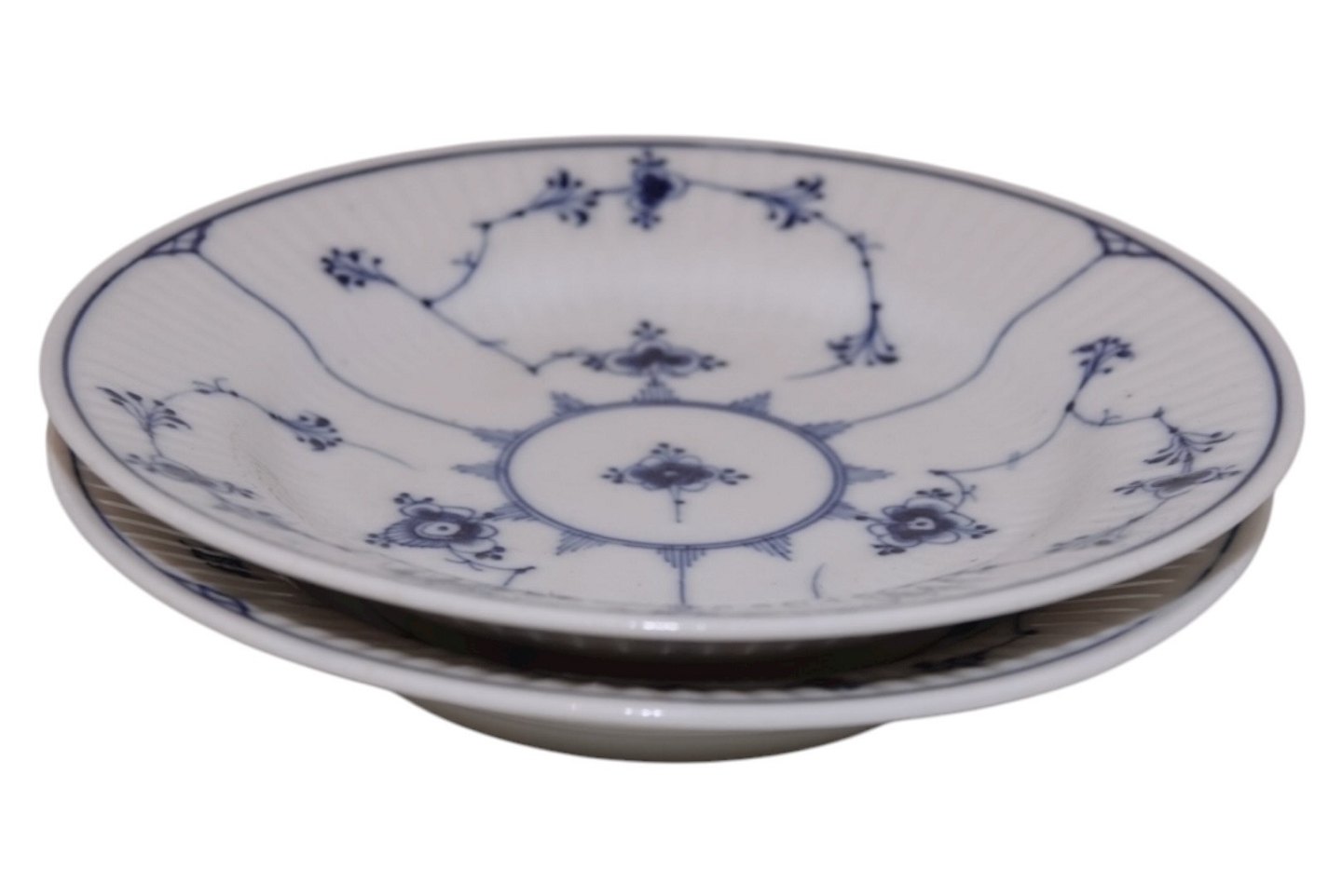 Beskrivelse: Bing & Grøndahl Blåmalet Riflet (Musselmalet Riflet), lille brødtallerken.