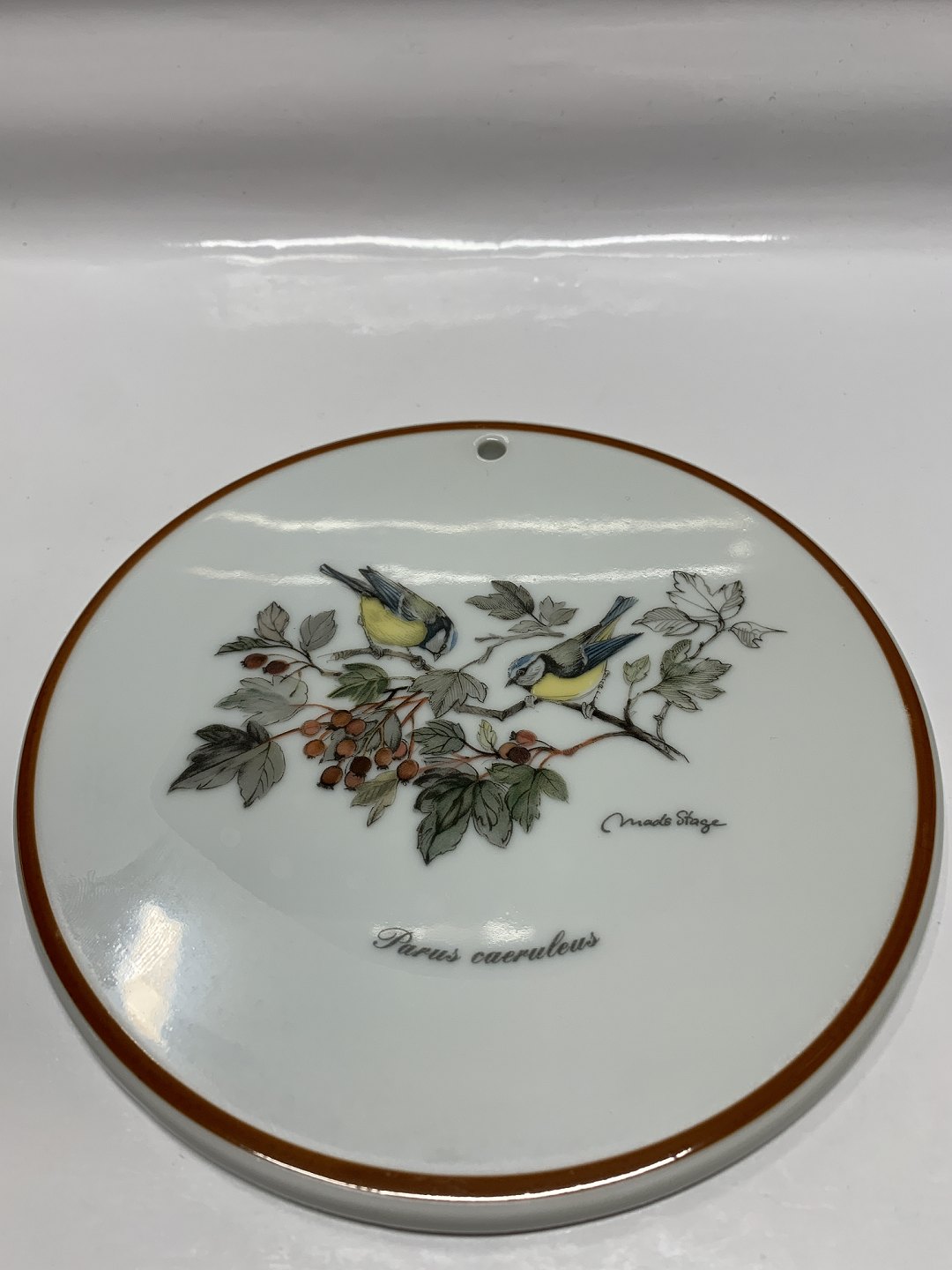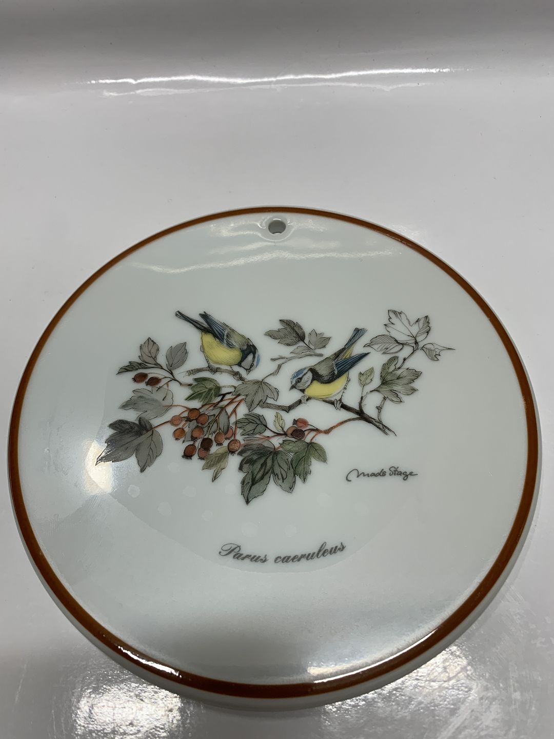 Beskrivelse: Jagtstellet Mads Stage Smørebrik / Platte, (Perus caeruleus)