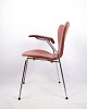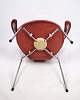 Description: Arne Jacobsen Seven-chair with armrests, model 3207. Cognac-colored leather and chrome frame. Fritz Hansen design classic.