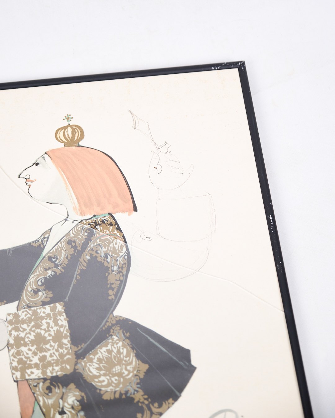 Litografisk Tryk I Sort Ramme - Signeret Af Bjørn Wiinblad