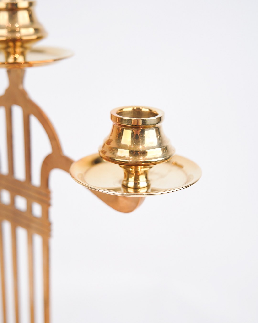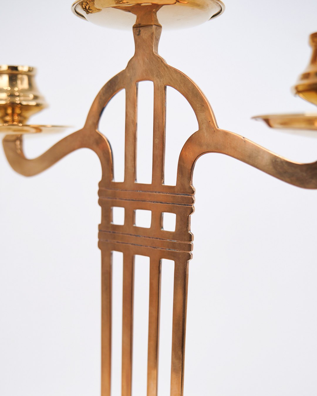 Sæt Af To Høje Trearmet Lysestager - Messing - Jugend Stil - 1920erne