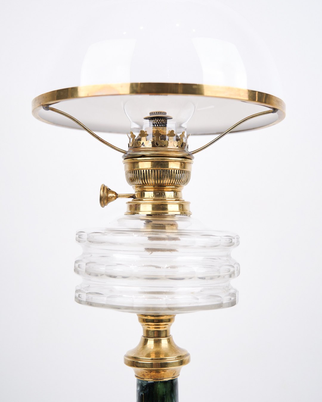 Petroleumslampe – Messing & Hvidt Opalglas – Fynsk Glasværk – År 1880’erne