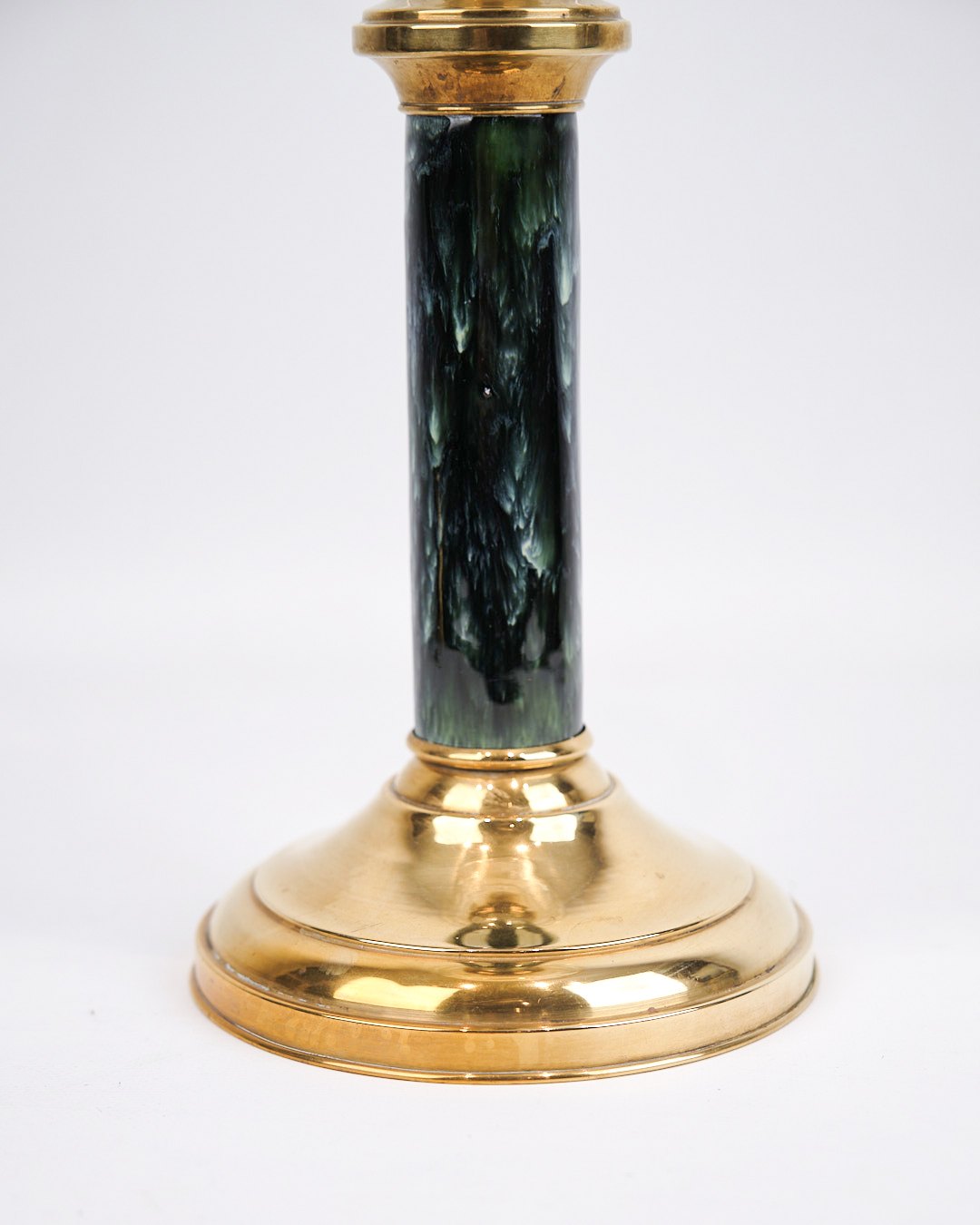 — Materialer: Messing, hvidt opalglas, marmoreret fod