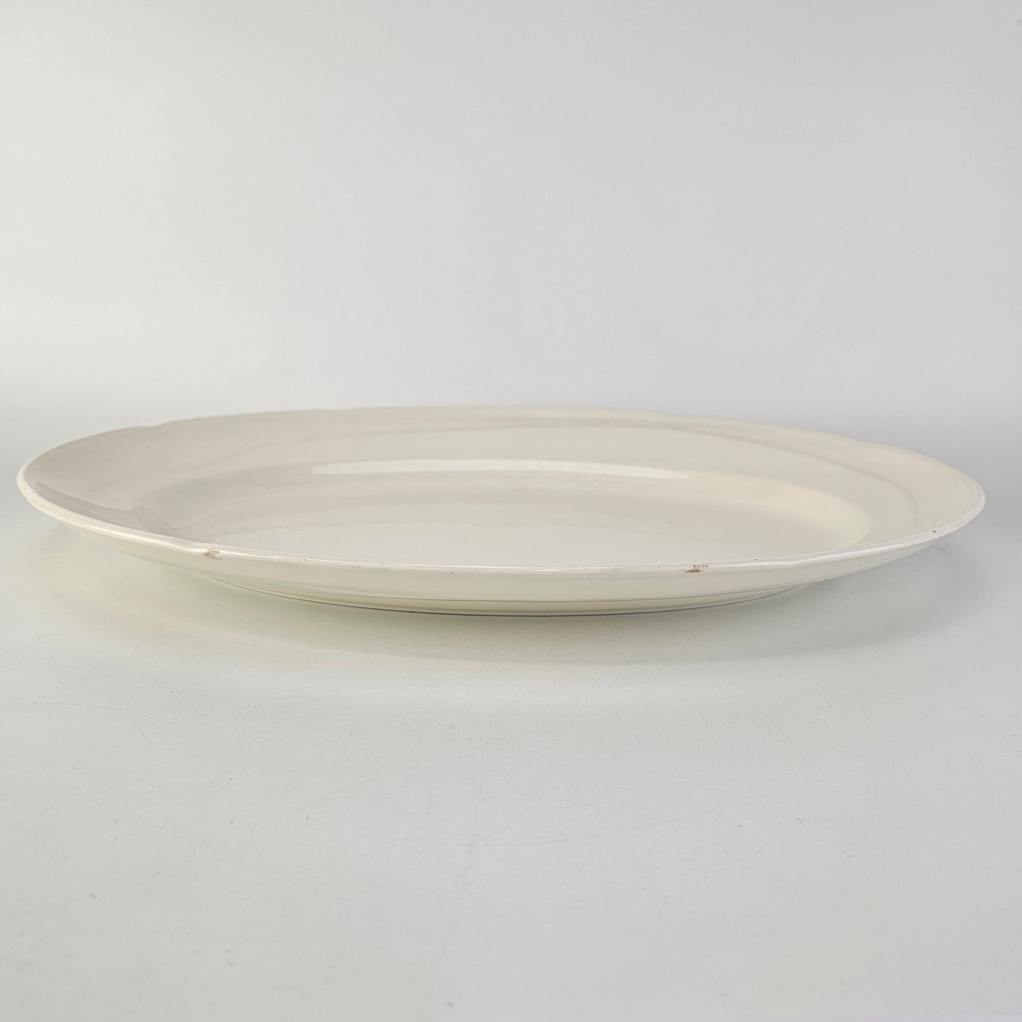 Beskrivelse: Mellem størrelse ovalt fad i cremefarvet fajance fra stellet Alma