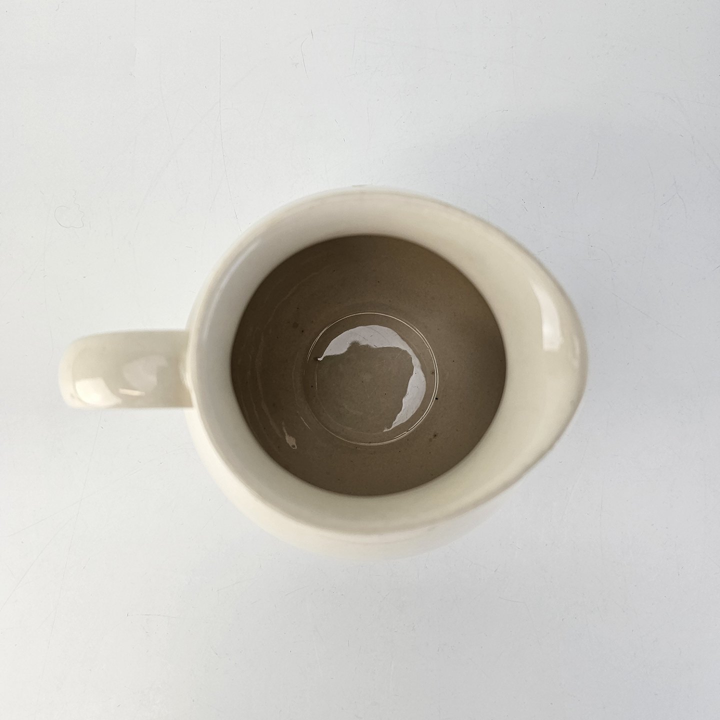 Beskrivelse: Mælkekande i cremefarvet fajance fra stellet Alma
