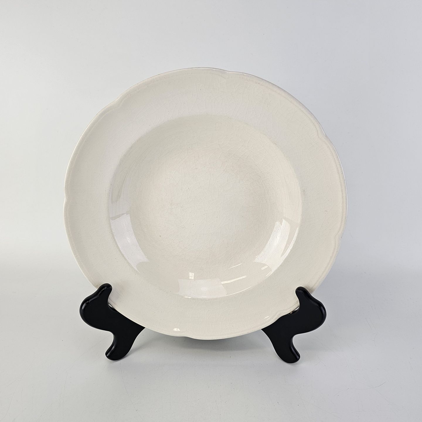 Beskrivelse: Dyb tallerken i cremefarvet fajance fra stellet Alma