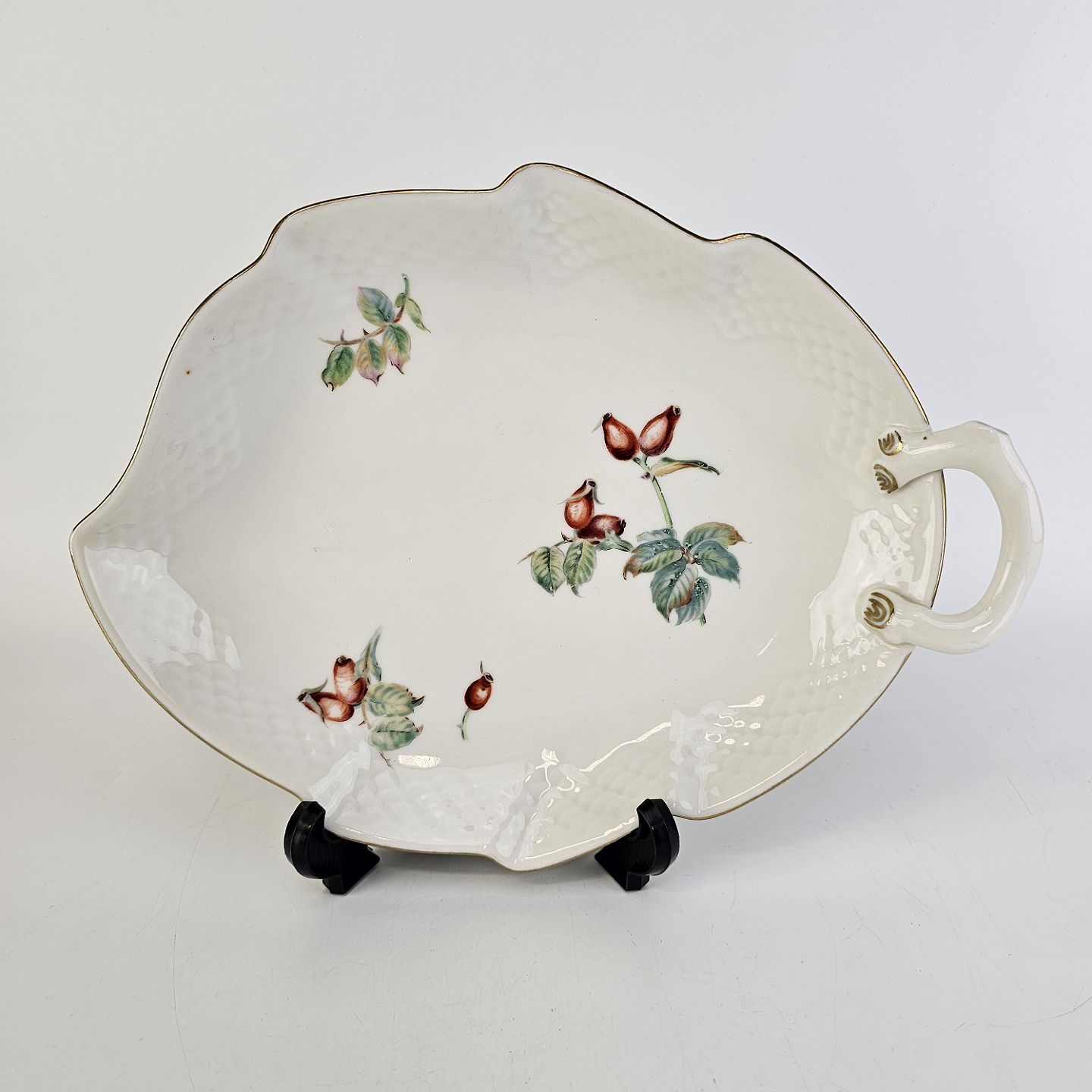 Beskrivelse: Bladformet fad i porcelæn fra stellet Balder