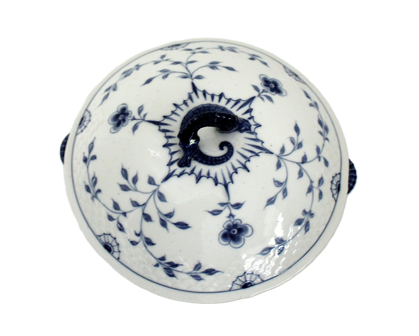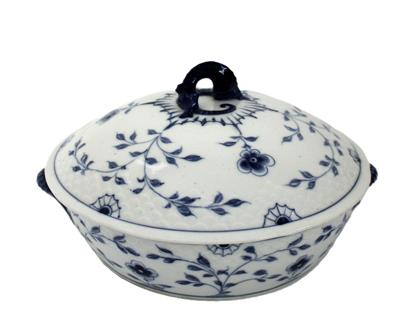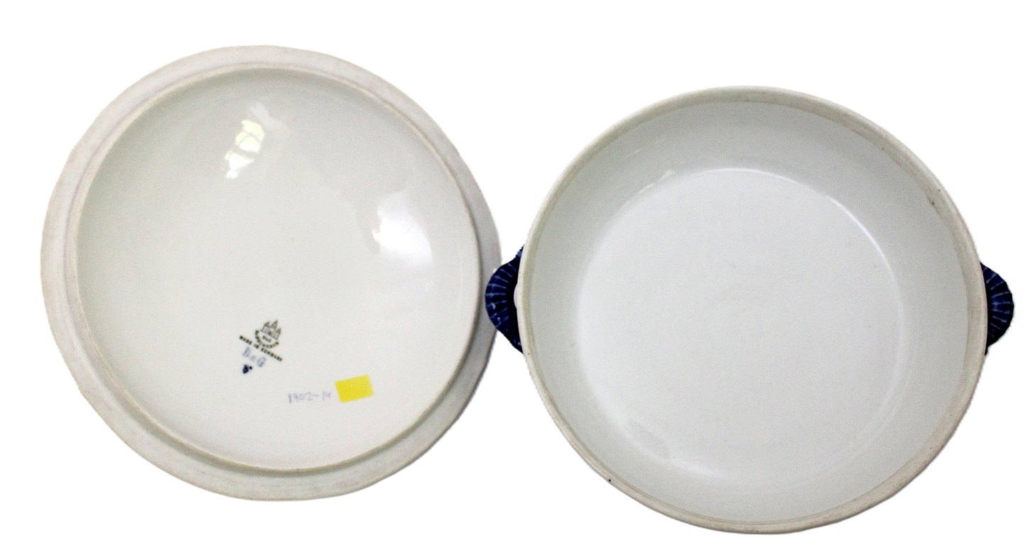 Beskrivelse: Bing & Grøndahl, Sommerfugl, Lågfad, terrin. Kartoffelskål med låg. Gratinskål med låg. Produceret i perioden 1902-1914. Med den tids småprikker i glasuren. I. sortering. Fin stand.