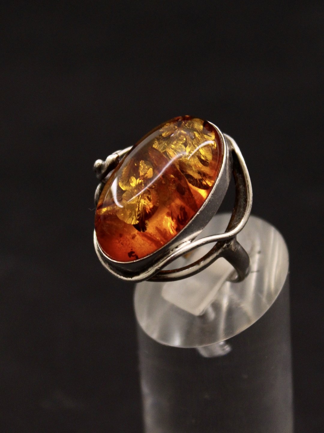 : Sterling sølv ring størrelse 54 med rav emne nr. 622303
