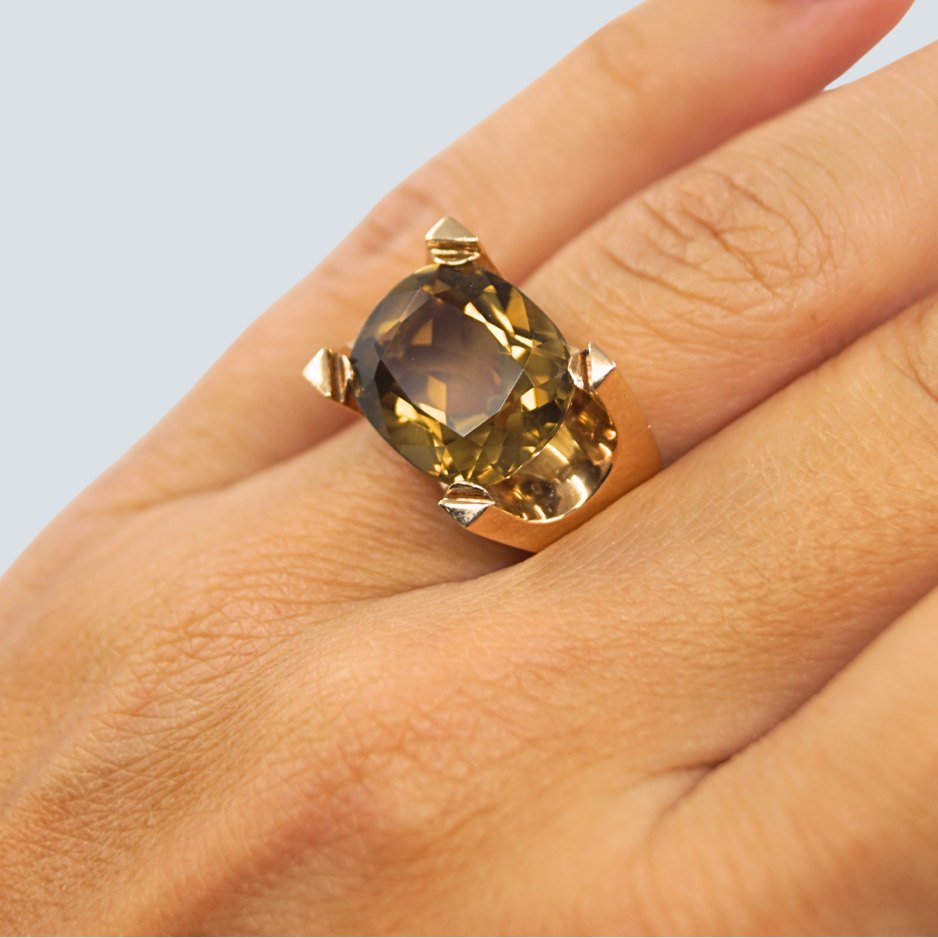 Description: Just Andersen; A ring of 14k gold, set with a large topaz. Ring size: 51.