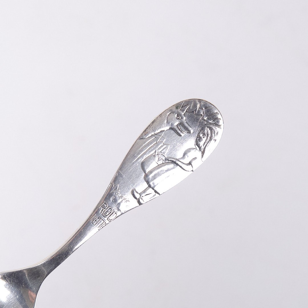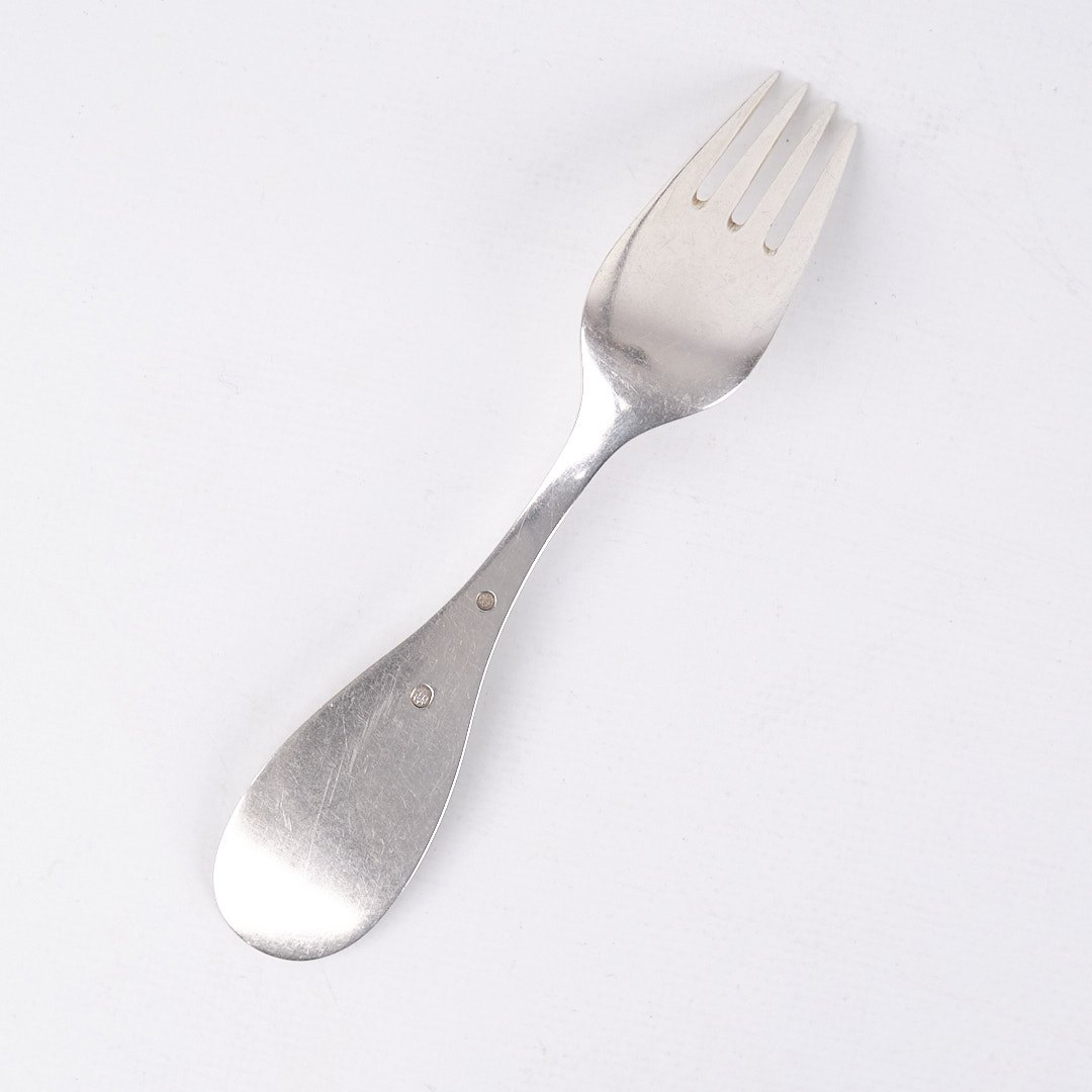 Beskrivelse: Barnegaffel i tretårnet sølv med motiv af “Den Lille Rødhætte”. Stemplet. Klassisk dansk sølvdesign.