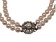 Beskrivelse: Dobbeltradet perlekæde af store rosa-farvet Akoya perler fra Japan. Akoya perler er regnet af nogle af de bedste perler blandt andet på grund af en general højere kvalitet, en rundere form og en flot skinnende overflade.