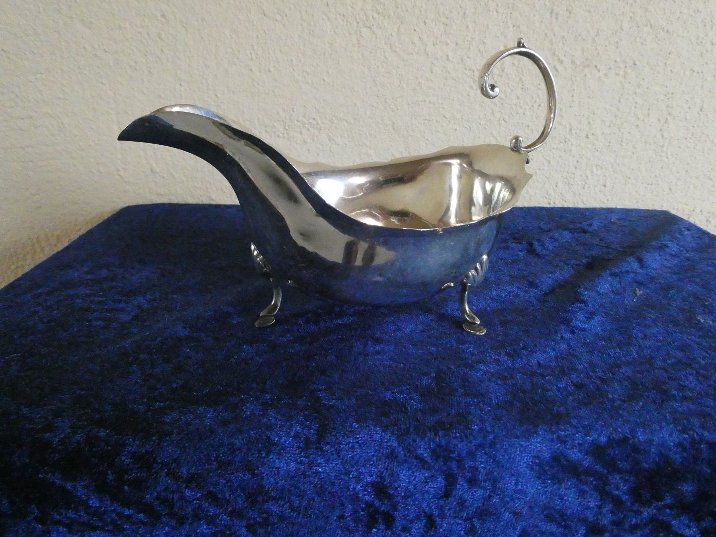 Beskrivelse: Smørnæb eller Saucekande på 3 ben med hank og hældetud i engelsk sterling sølv 925S fra Charles S Green & Co, Birmingham fra perioden 1941-1942. Pæn og velholdt.