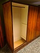 Beskrivelse: 3 dørs skydelåge klædeskab fra 1960'erne i finéret palisander. Fremstår uden overskab, og med uoriginal bund i venstre side (billede) plus et par skruehuller ligeledes i venstre side. (Billede)