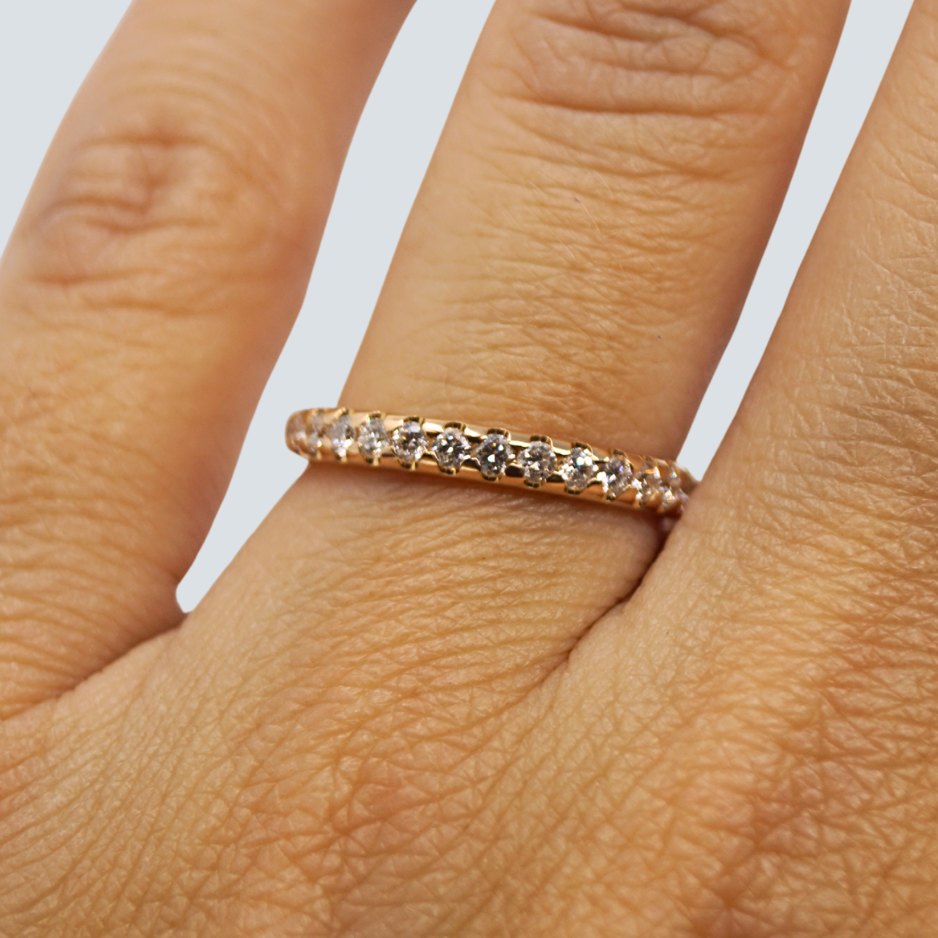 Description: Set of wedding rings in 18k gold. One with a blank surface, in ring size 61 (size can be changed). The other adorned with diamonds, a total of 0.70ct. TW Si. In ring size 50.