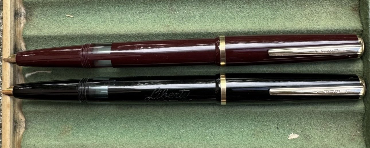Beskrivelse: ALDRIG BRUGT - To Liberty 501 fyldepenne i sort og rød I PERFEKT UBRUGT STAND. Piston filler. Klar til brug. Fremstillet i 1950’erne. I god stand. Ingen skader eller reparationer. Mål: 13,2 cm lange.
