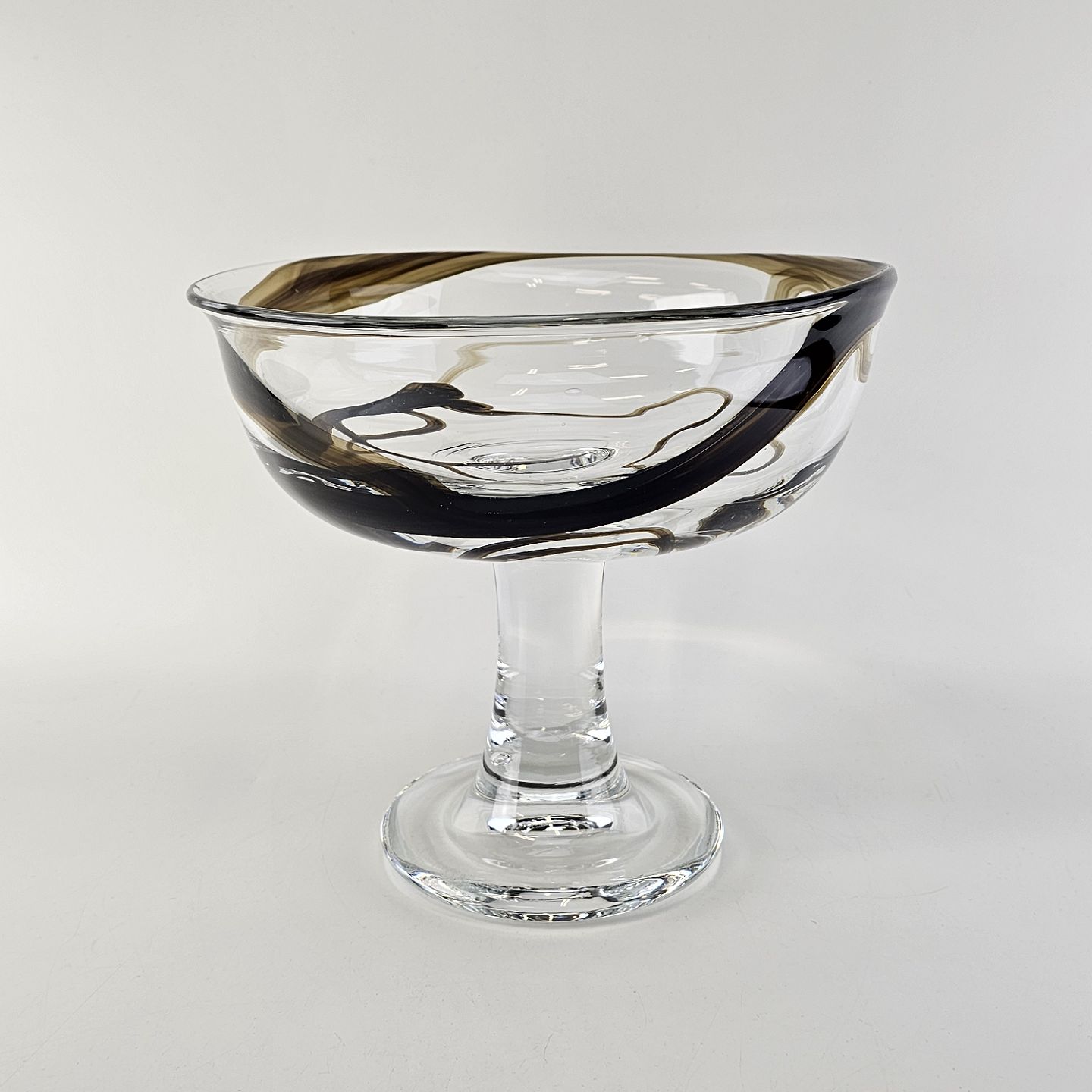 Beskrivelse: Opsats fra serien Tundra i klart glas dekoreret med sorte og brune farver
