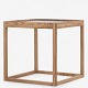 'Kubebord' med stel i olieret egetræ og røgfarvet glasplade.