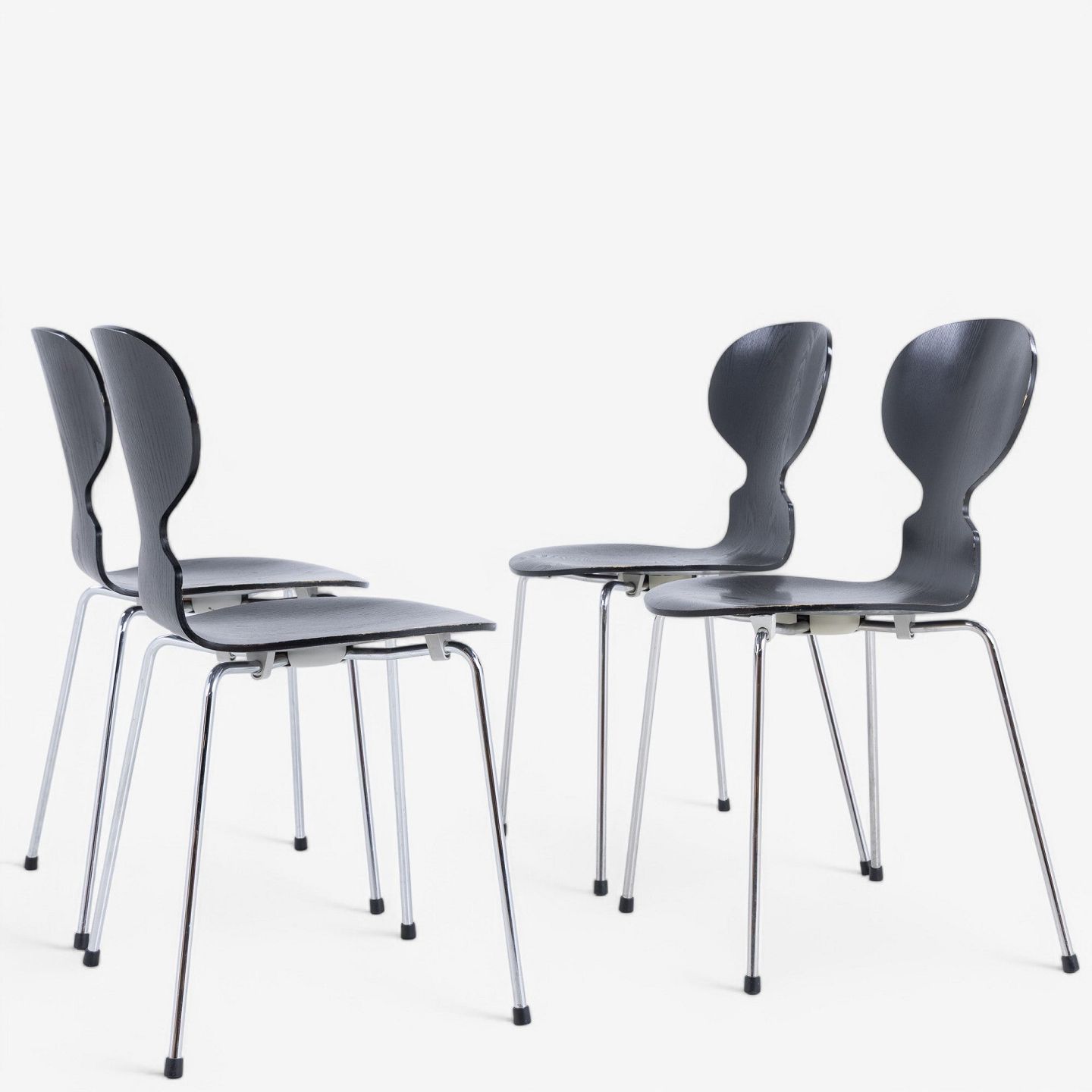 AJ 3100 - Set of 4 black-glazed Ant chairs with steel frame.