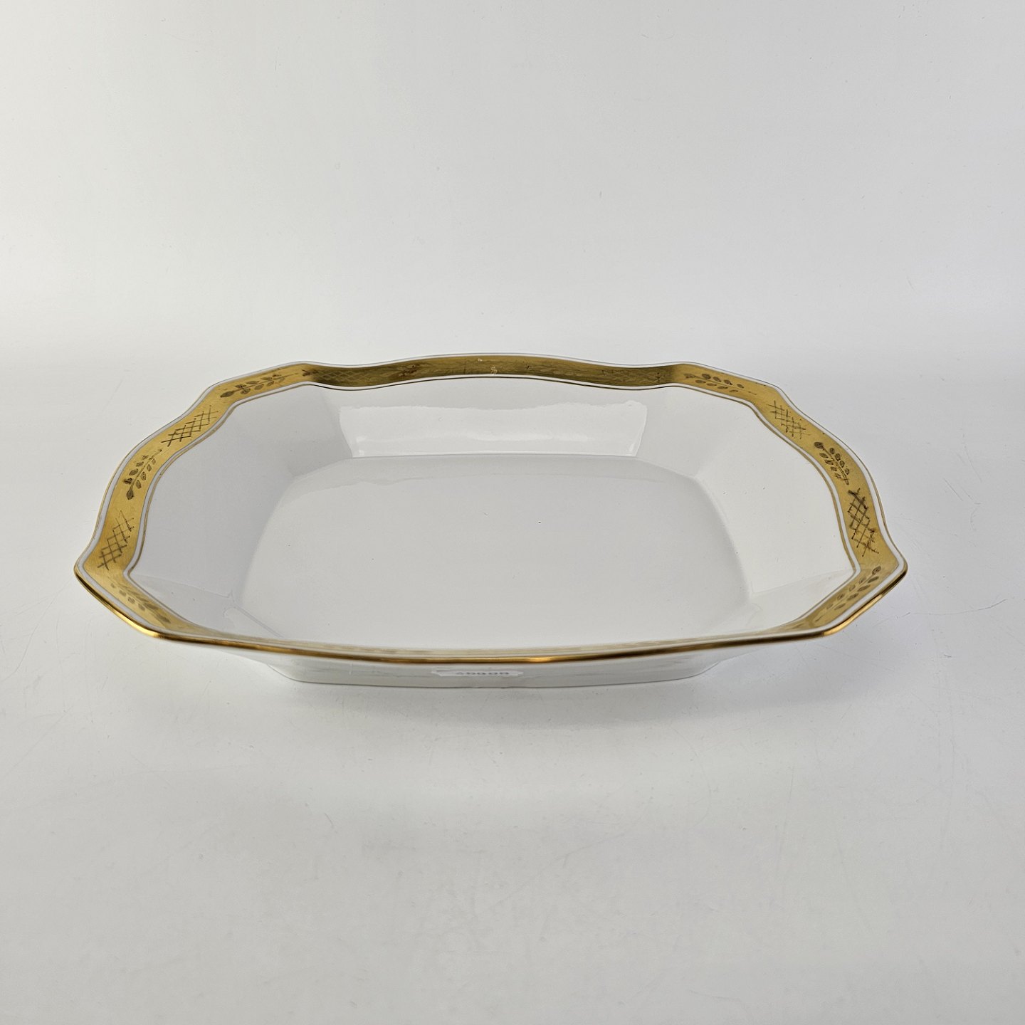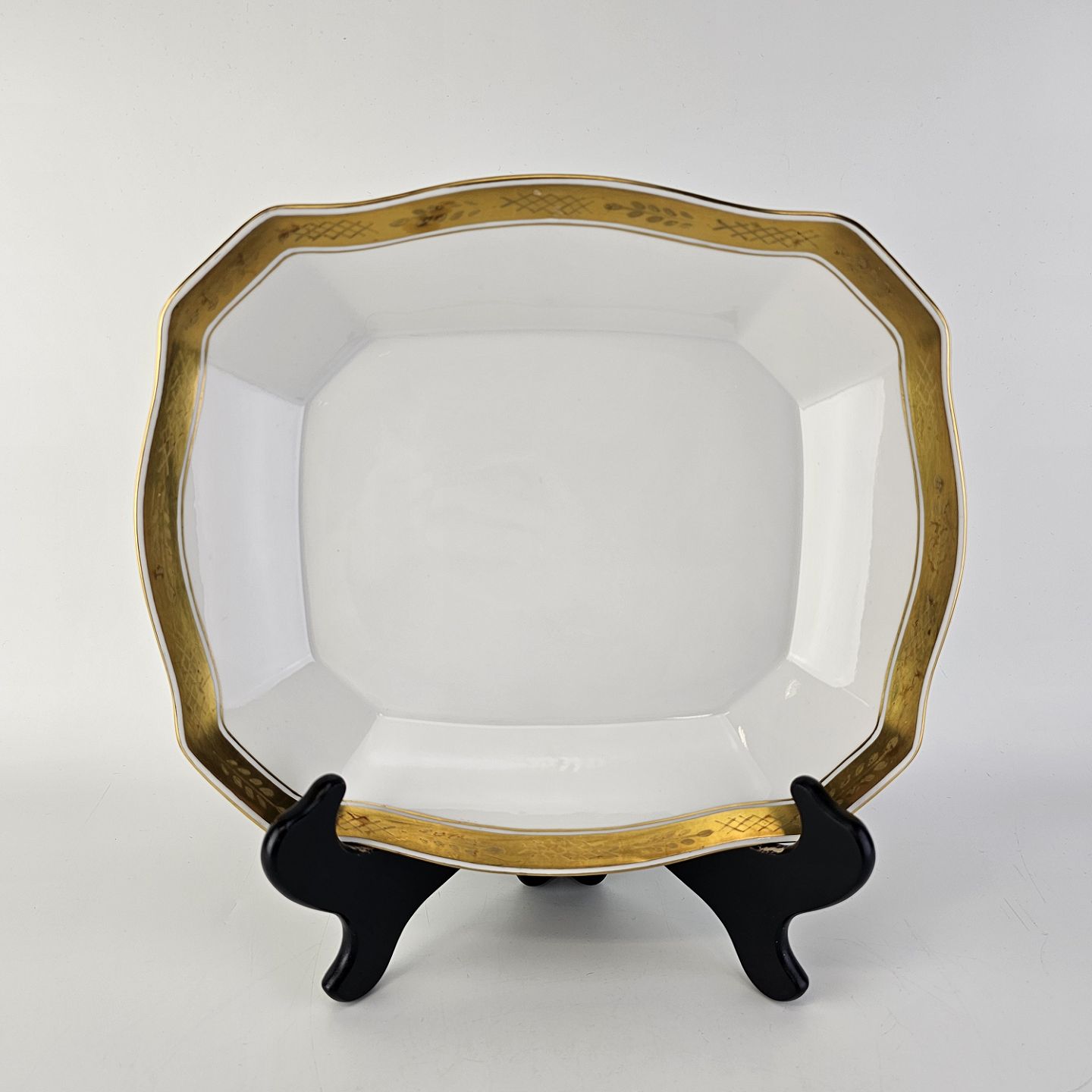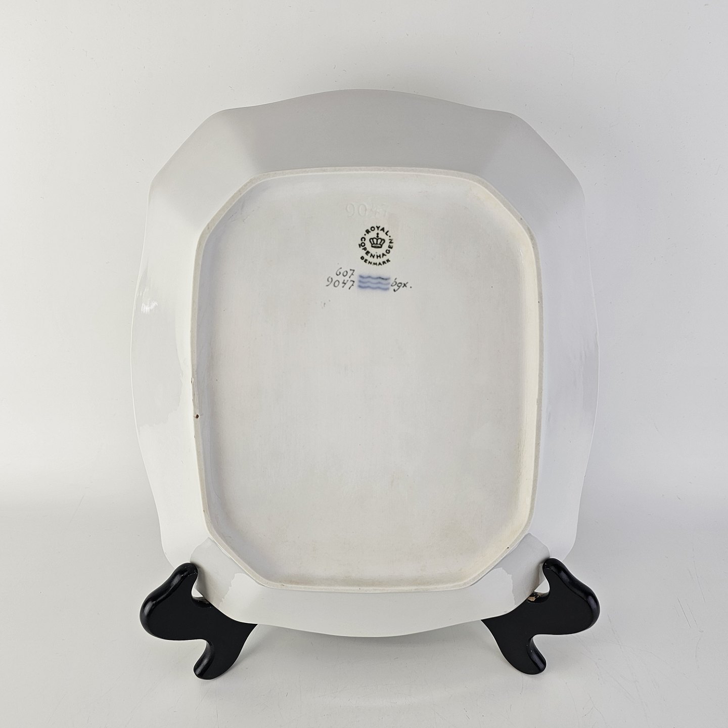Beskrivelse: Fad med buede kanter i kongeligt porcelæn fra stel nr. 607