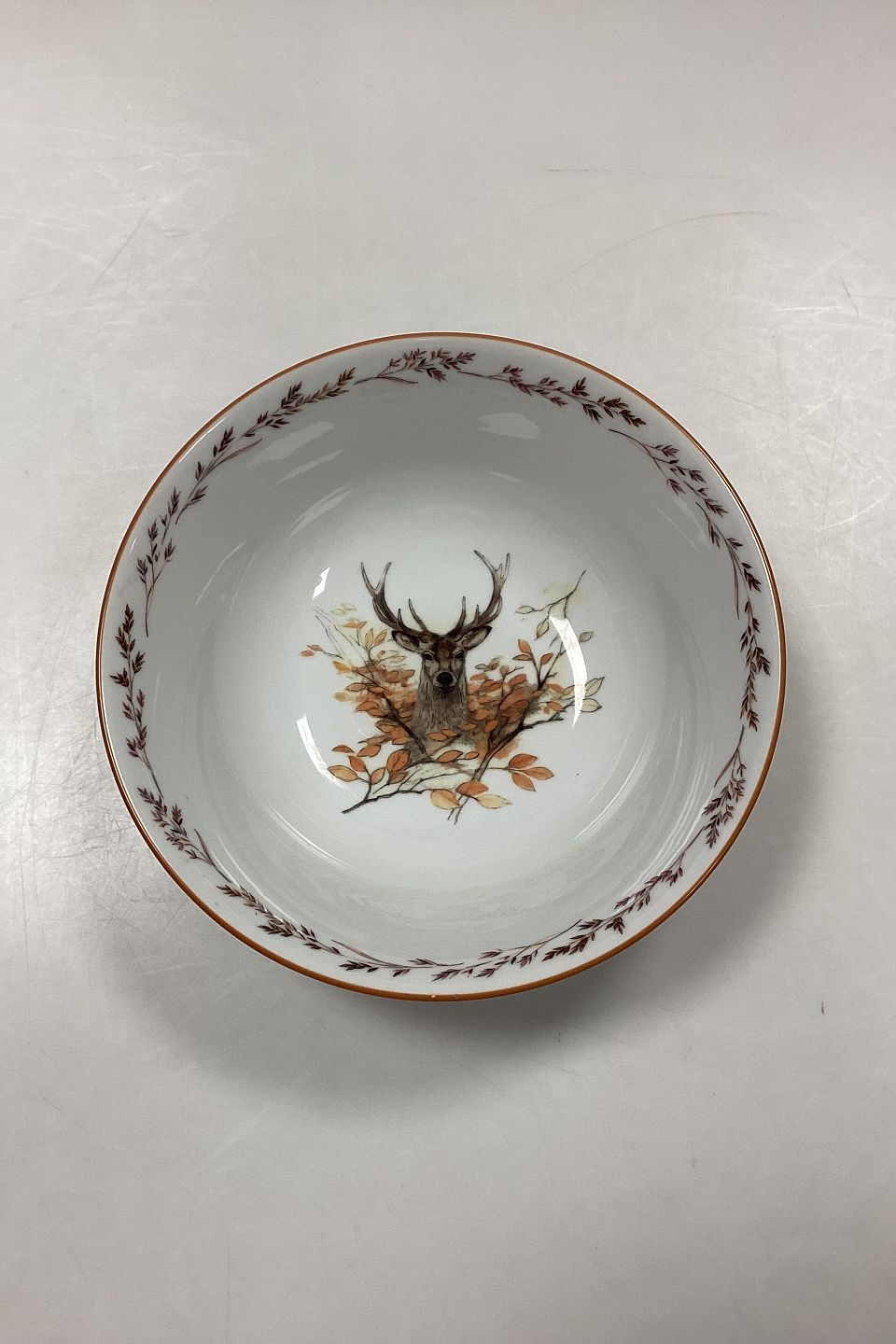 Beskrivelse: Mads Stage Jagtstellet Kartoffleskål. Producent: Seltmann Weiden. Motiv: Hjort.