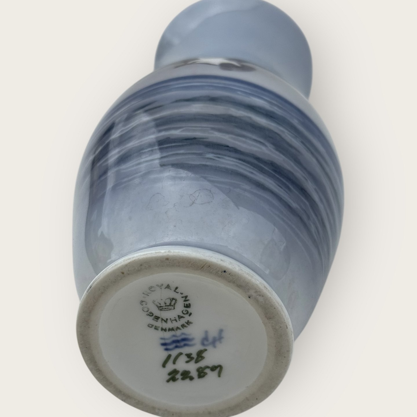 Beskrivelse: Royal Copenhagen, vase, # 1138/2289, 3. sortering pga. lille skævhed øverst ellers pæn stand, Højde 17,5cm