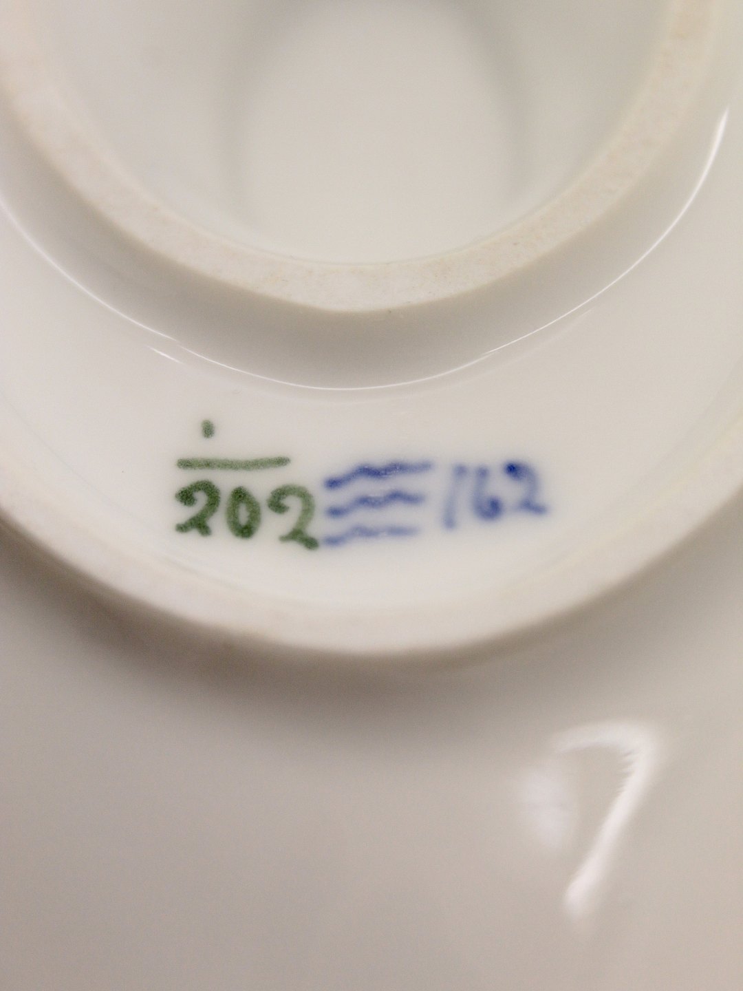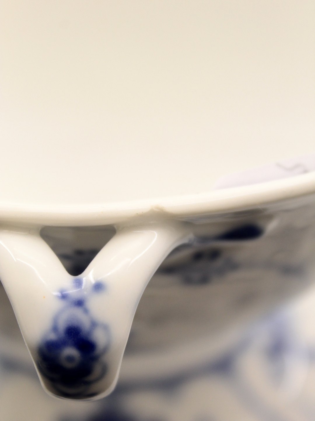 Beskrivelse: Royal Copenhagen musselmalet sovseskål 1/202 1.sortering men lille afslag ve hank se foto emne nr. nr. 622915