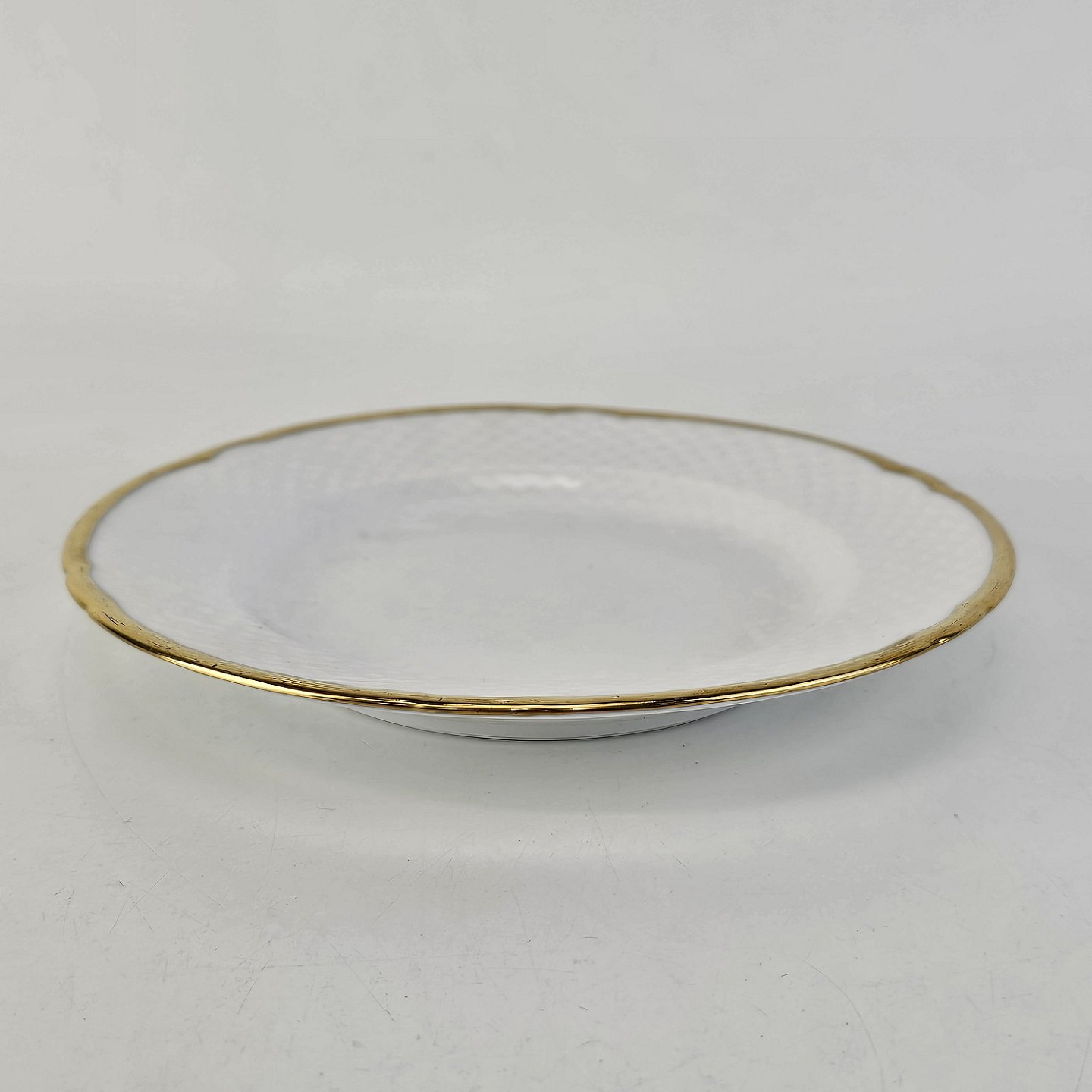 Service i lyst porcelæn med skælform og gylden kant