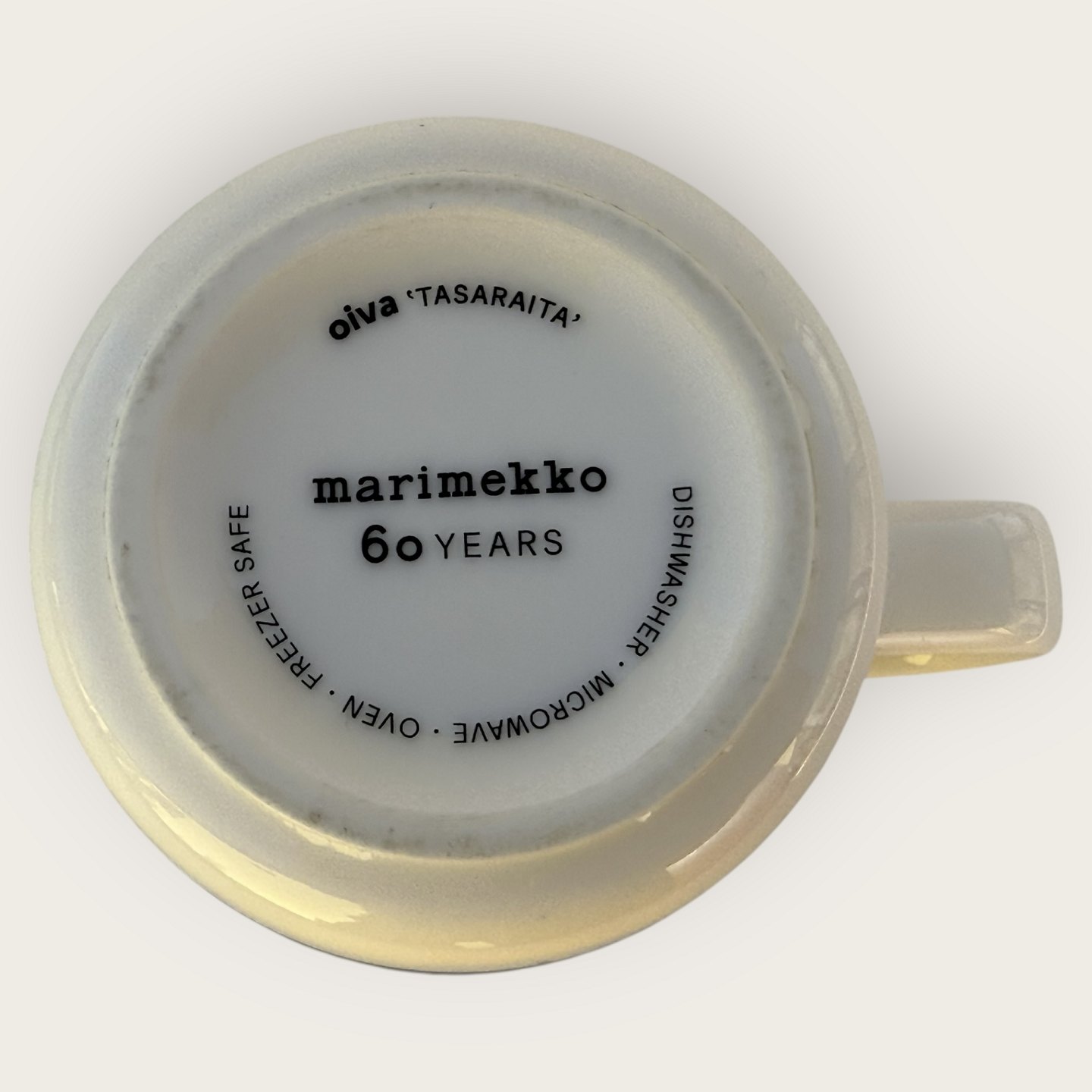 : Marimekko krus med striber, Oiva Tasaraita, Højde 9,5cm, diameter 8cm *perfekt stand*