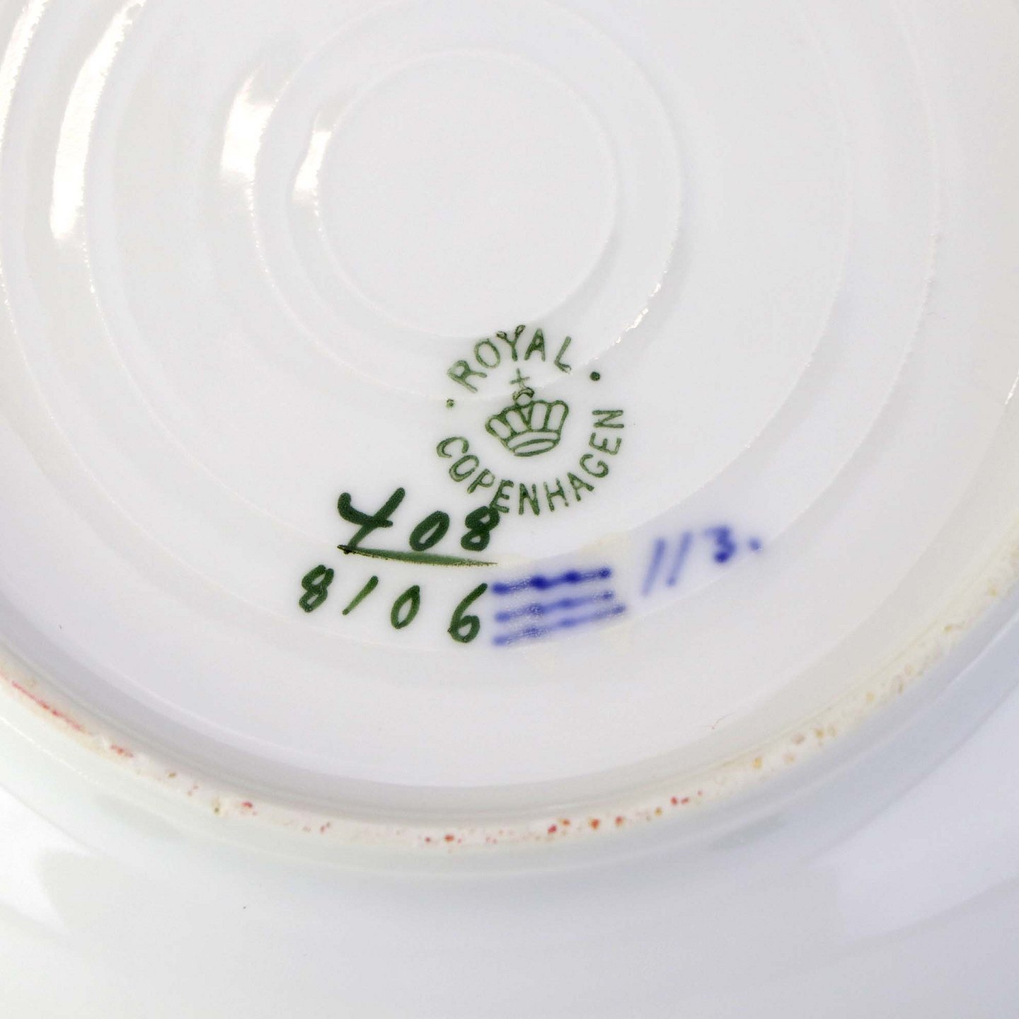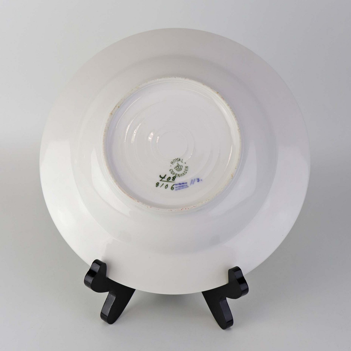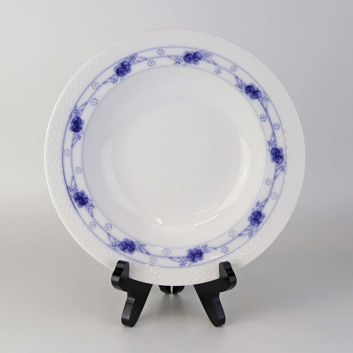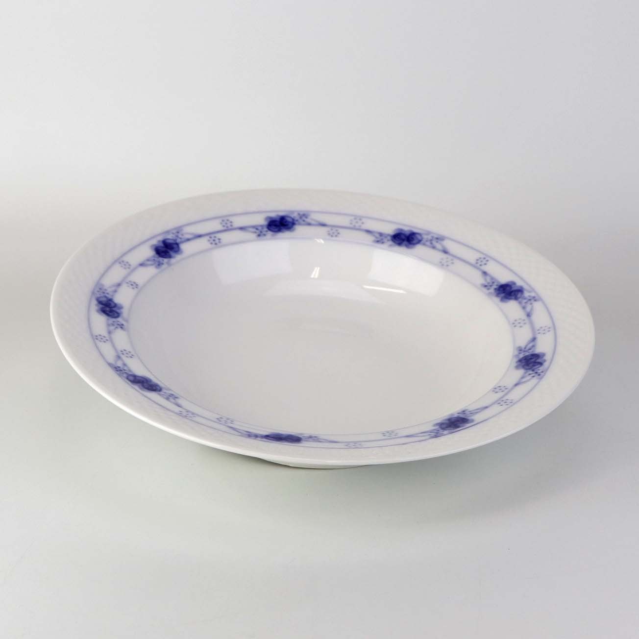 Beskrivelse: Dyb tallerken i kongeligt porcelæn fra stellet Rosenknop. Nr. 408/8106