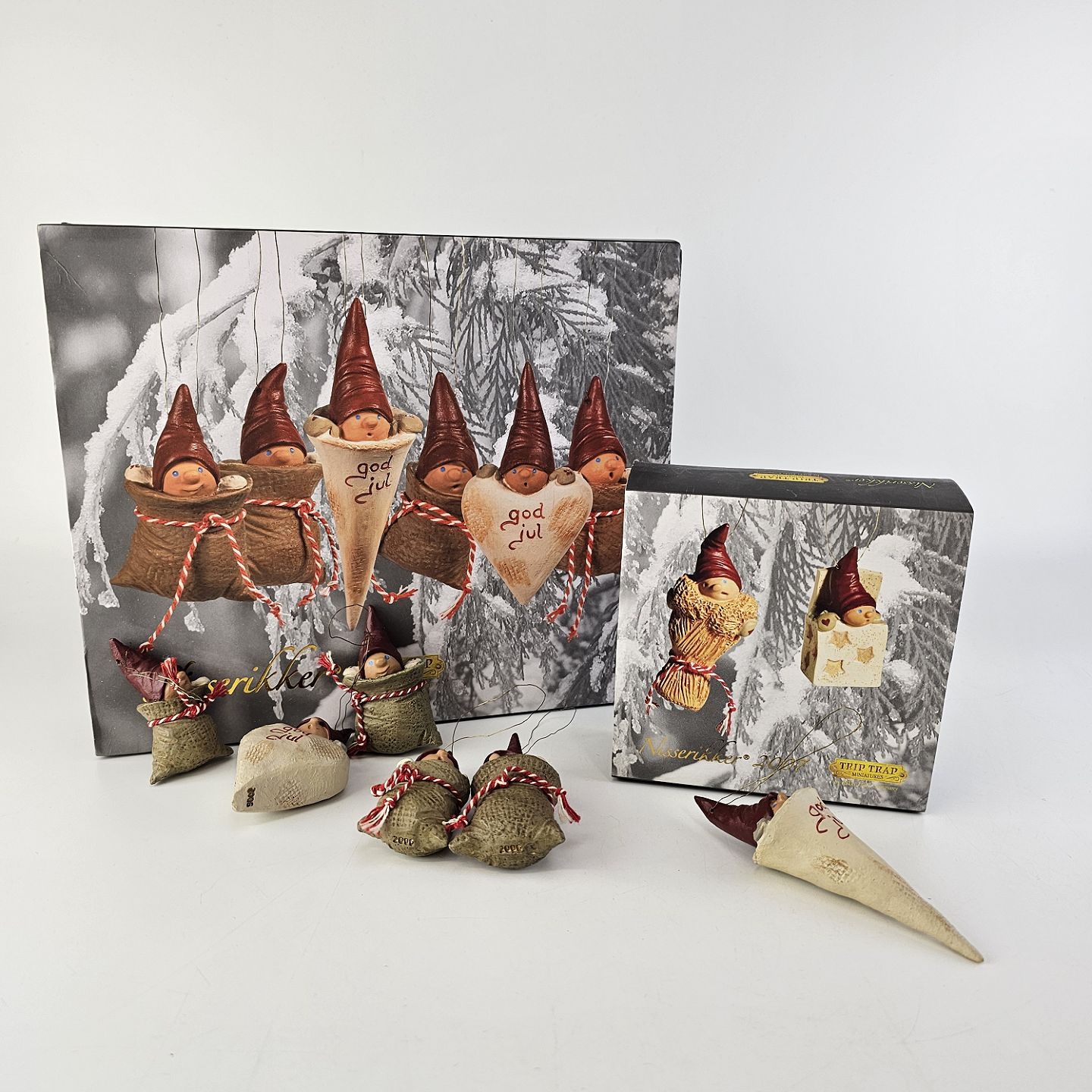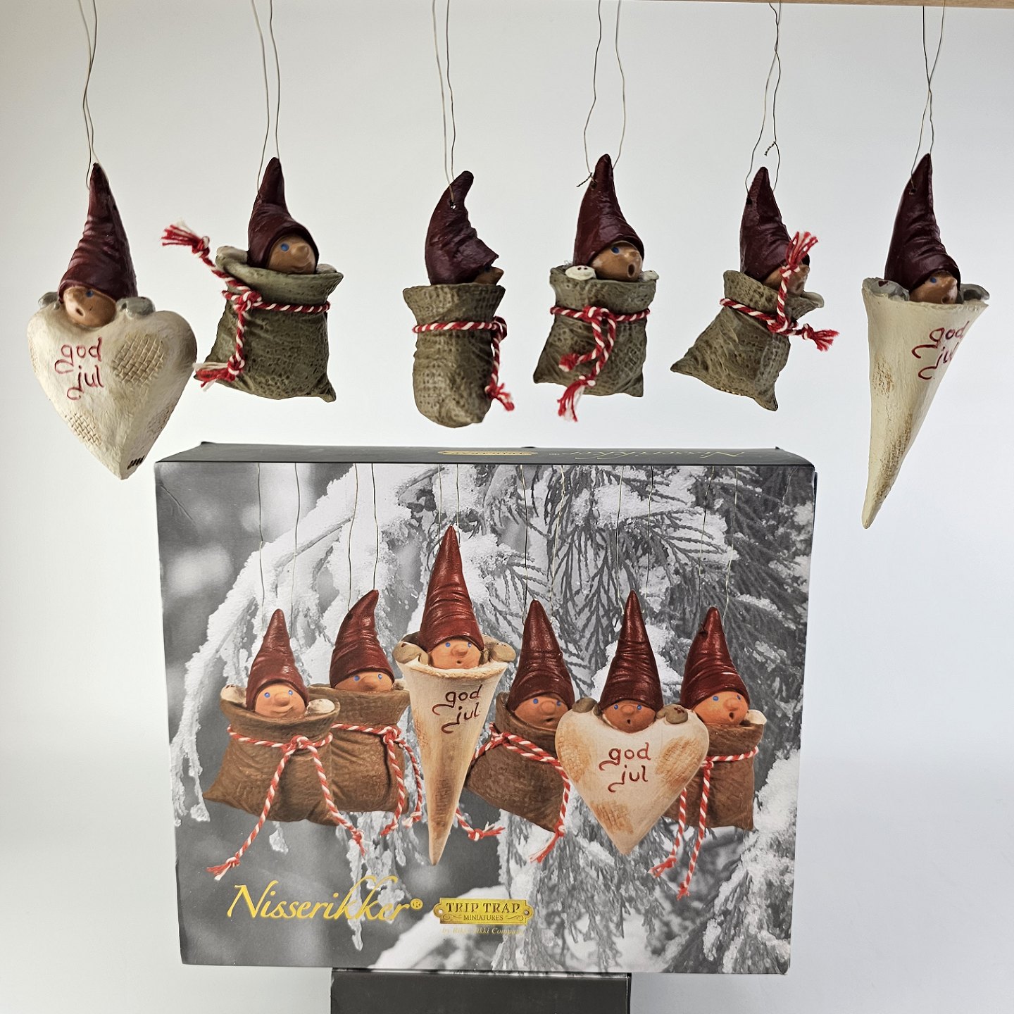 Beskrivelse: 2 æsker med små nisser til ophæng, begge med original kasse