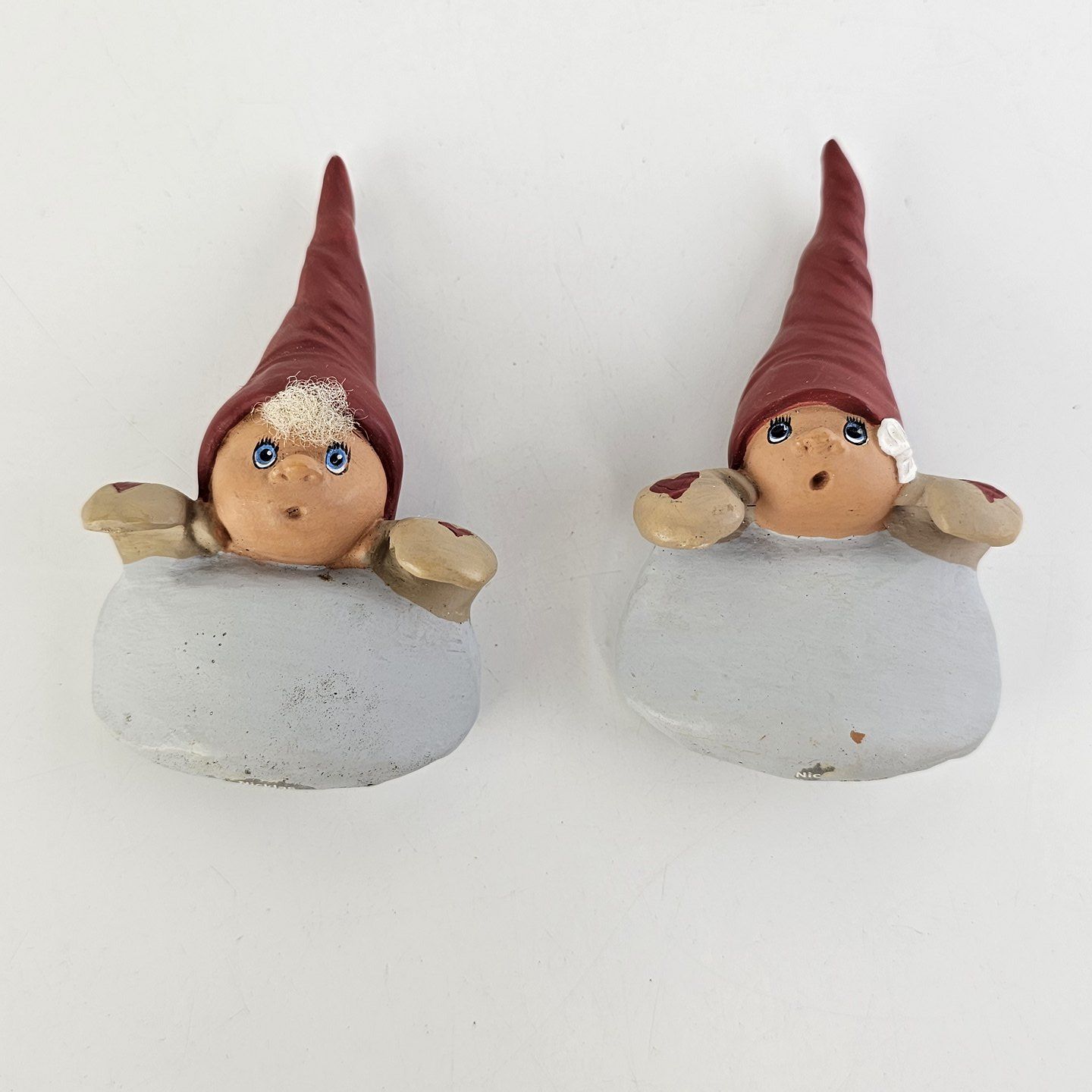 Beskrivelse: Figurer med motiv af to små nisser Nicklas og Nicoline, og en lysestage med navnet Paw