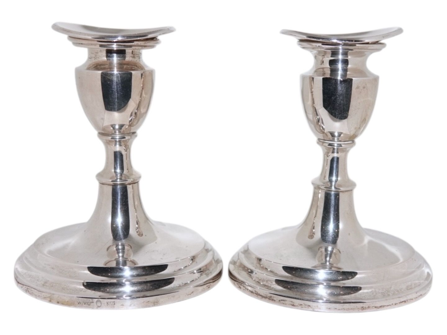 Beskrivelse: Willy Vollmers sølv, par lysetager med aftagelig lysmanchet.