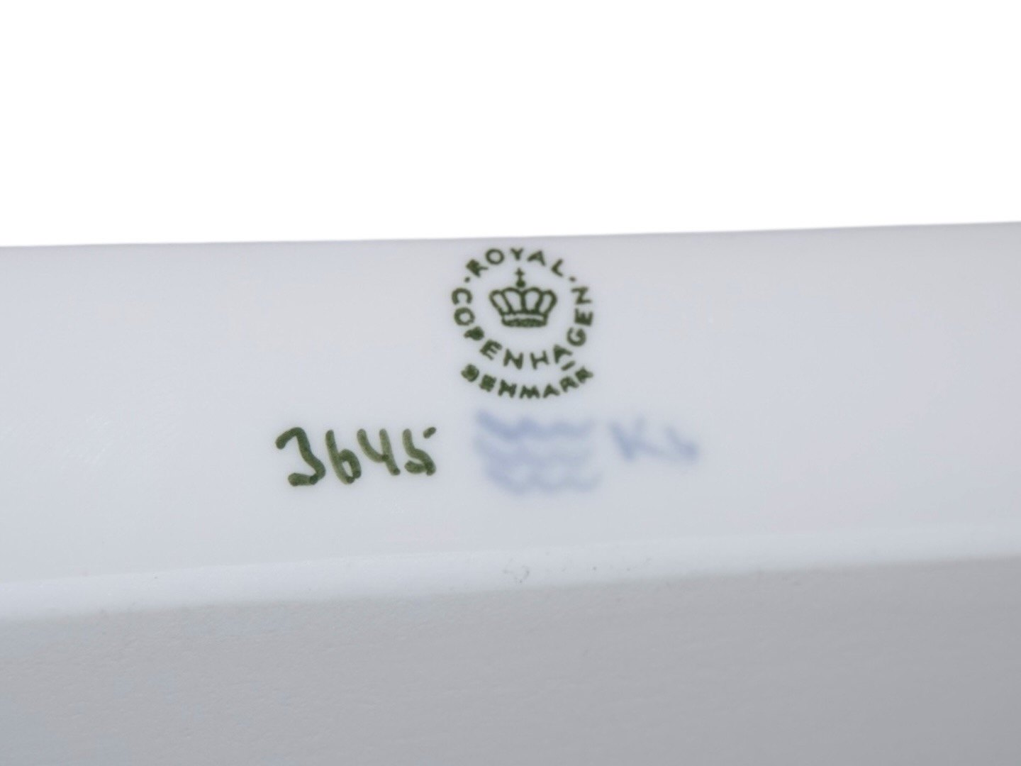 Beskrivelse: Royal Copenhagen stor firkantet asiet (oprindeligt askebæger), Langelinie med Den Lille Havfrue.
